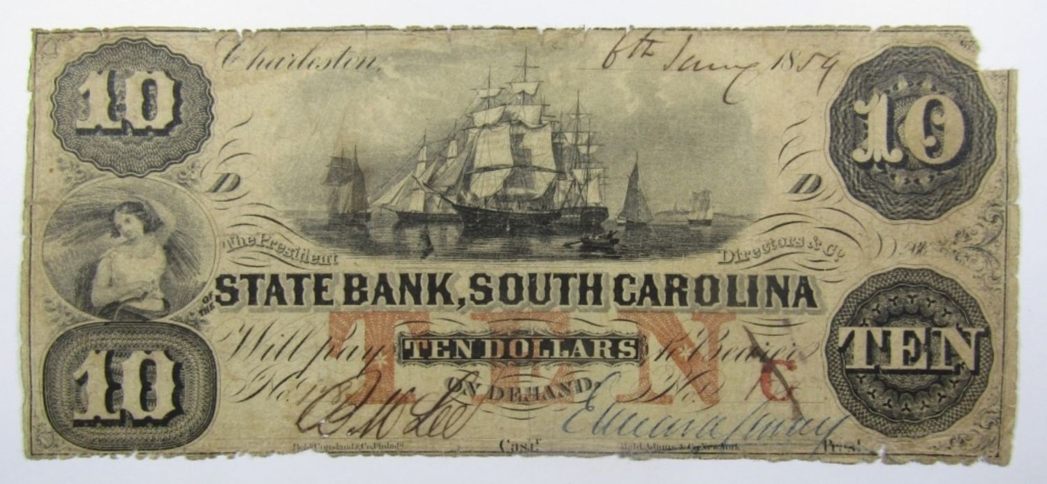 1859 $10 SOUTH CAROLINA OBSOLETE NOTE