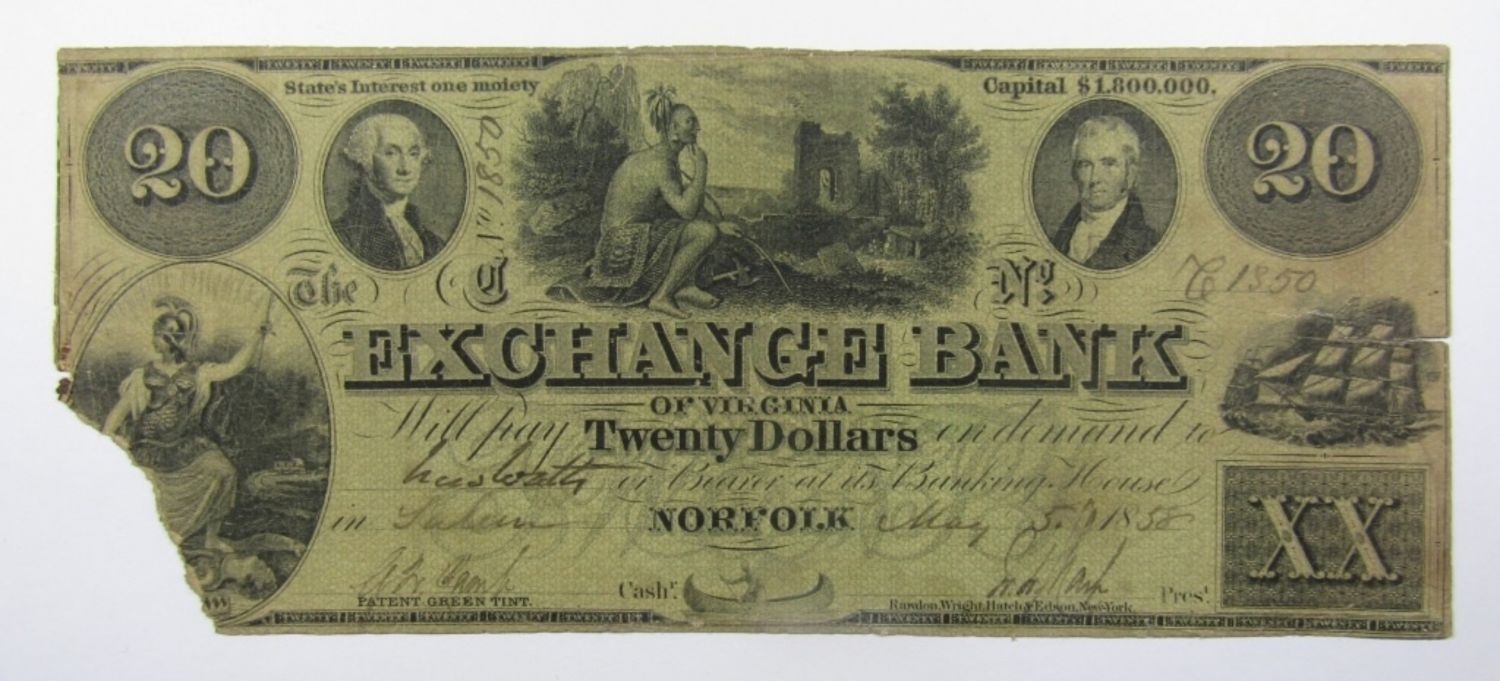 1858 $20 VIRGINIA OBSOLETE CURRENCY NOTE