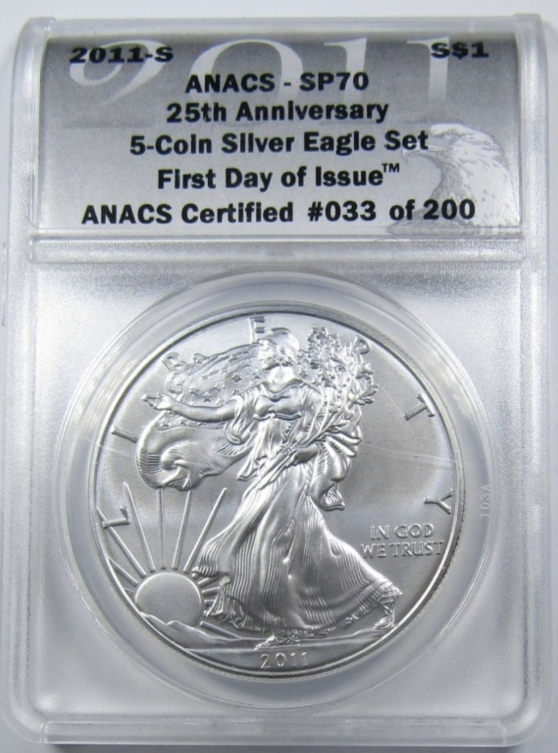 EAGLE 25TH ANNIVERSARY. FIRST DAY OF ISSUE. FROM 5-COIN SILVER EAGLE SET