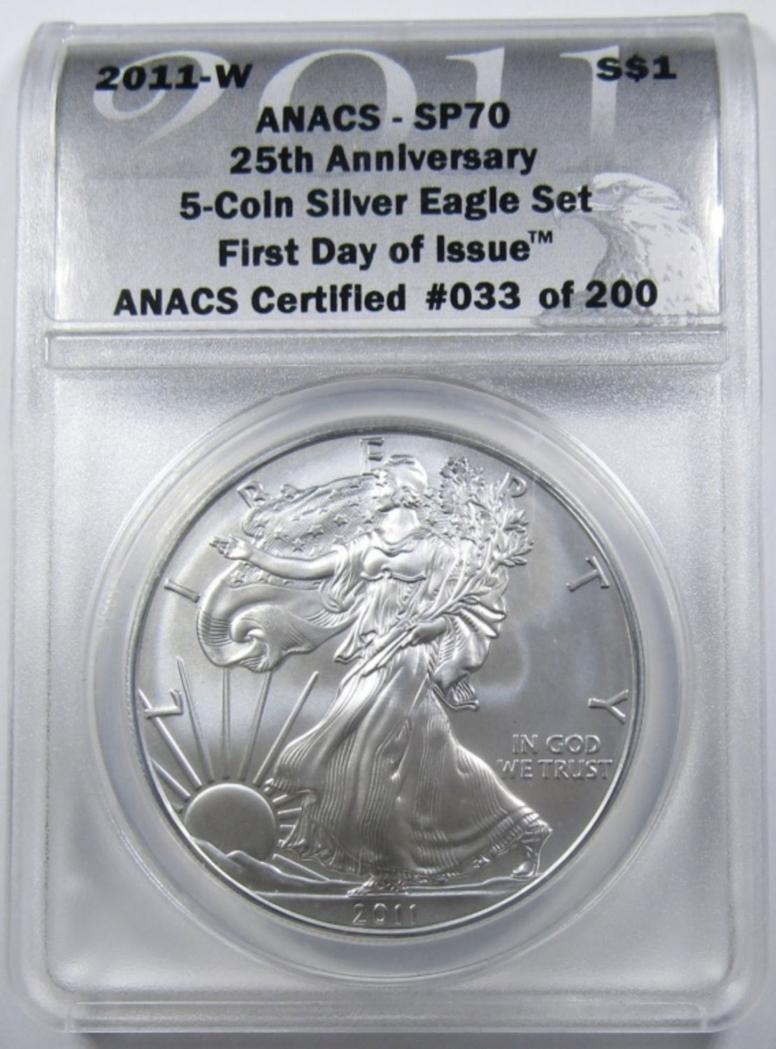 EAGLE 25TH ANNIVERSARY. FIRST DAY OF ISSUE. FROM 5-COIN SILVER EAGLE SET