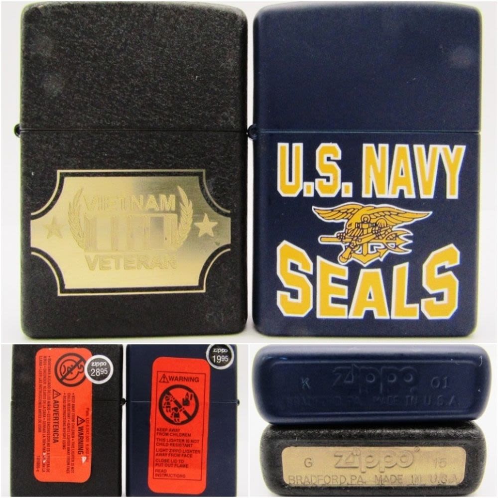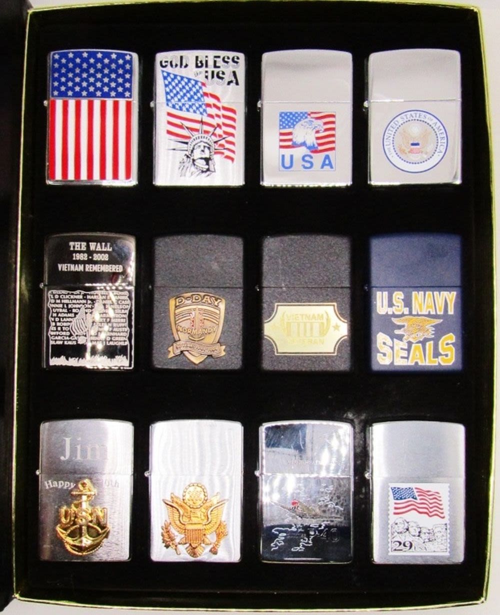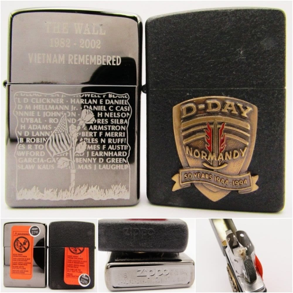 American Zippo Lighters, United States of America, Vietname Remembered “The Wall”, D-Day Normandy, Vietnam Veteran, U.S. Navy Seals, United States Navy “Happy 70th Jim”, Vintage Aircraft Curtiss P-40, Postage Stamp;
