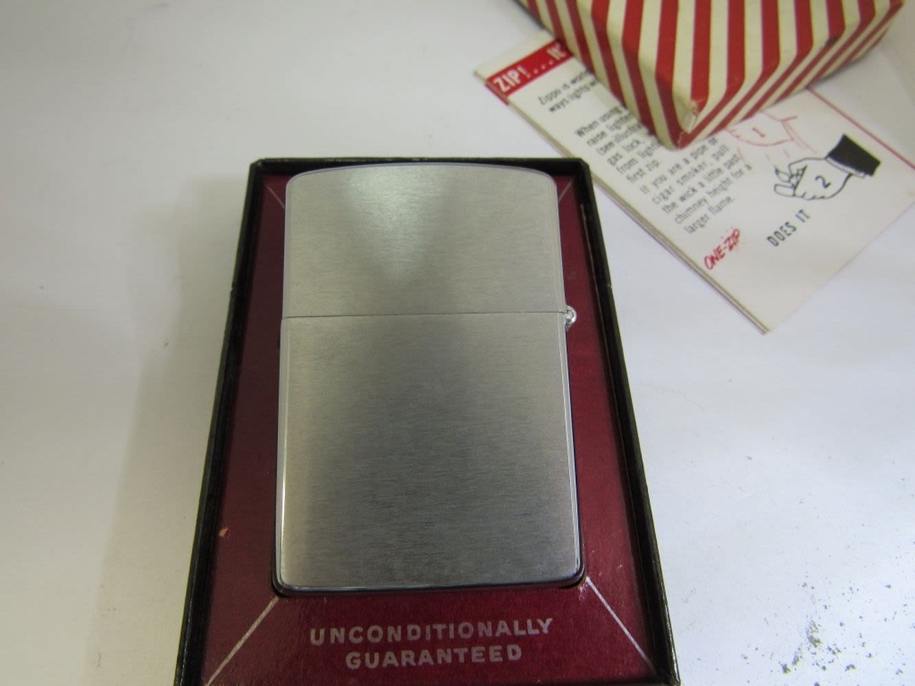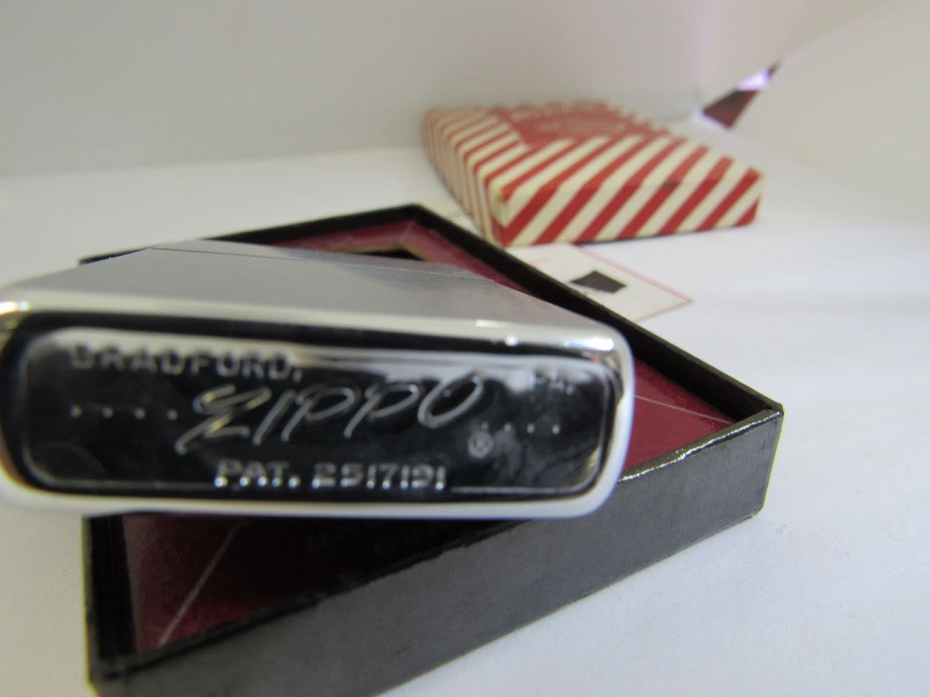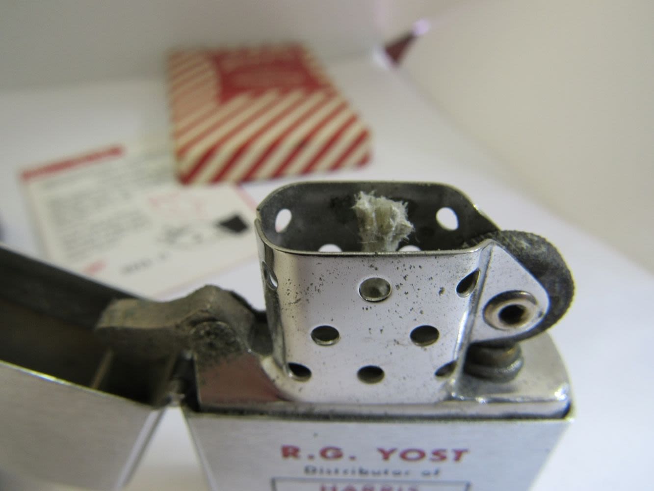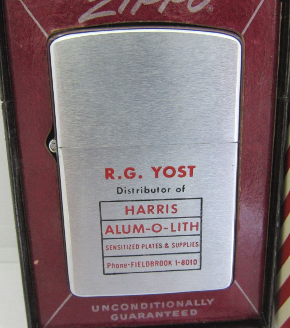 New In Box! Marked “R.G. Yost Harris Alum-O-Lith”; Pat. 2517191, Windproof Vintage Zippo Lighter!