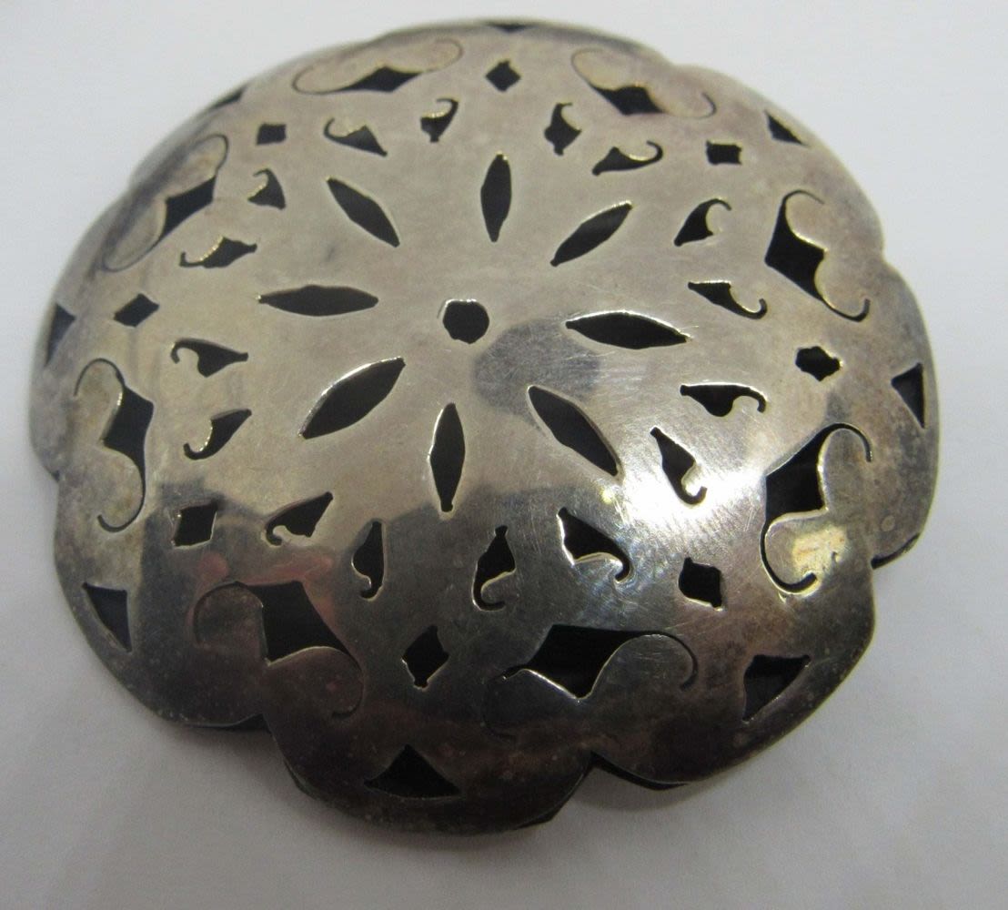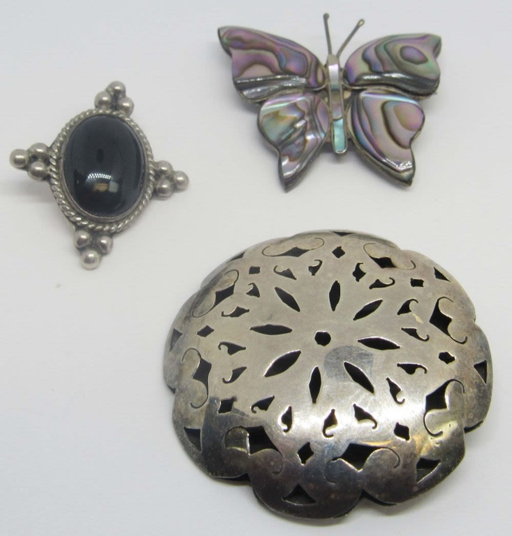 BROOCH WITH ABILONE INLAY (1)TM-268 PENDANT (1)CIRCULAR BROOCH WITH CUT OUT DESIGN-TOTAL 14 DWT