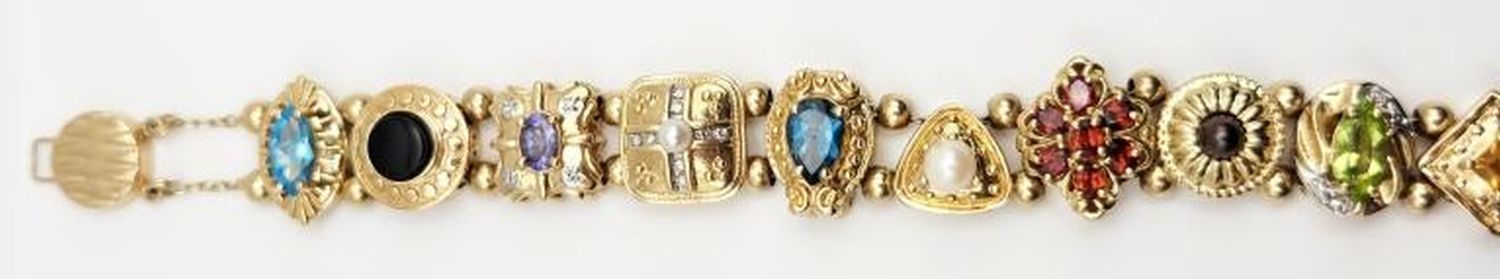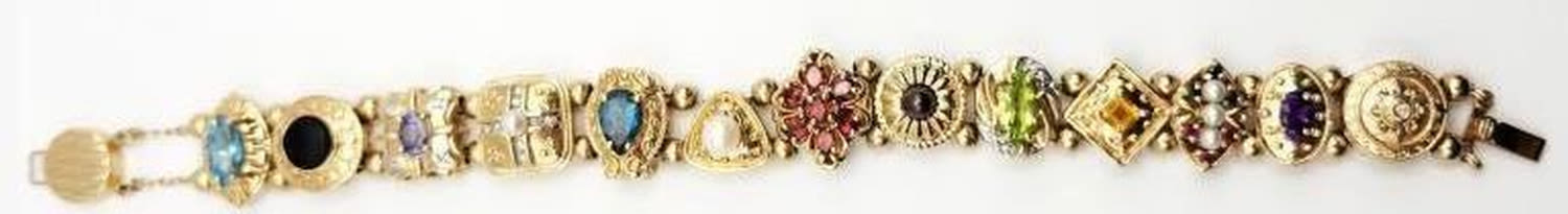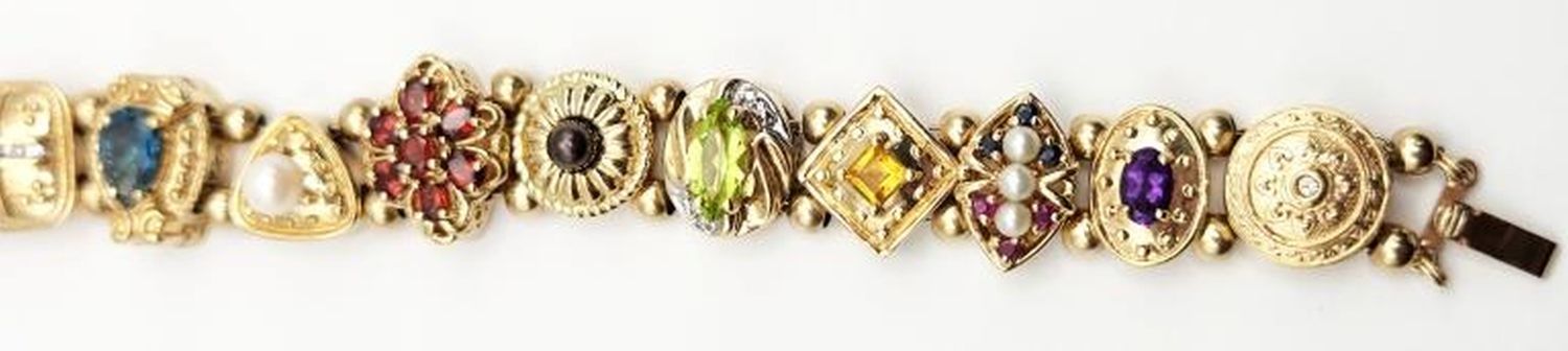 AMETHYST-PEARL-PERIDOT-CITRINE-GARNET-TOPAZ-O NYX-MEASURES 8 INCHES-TOTAL 28 DWT