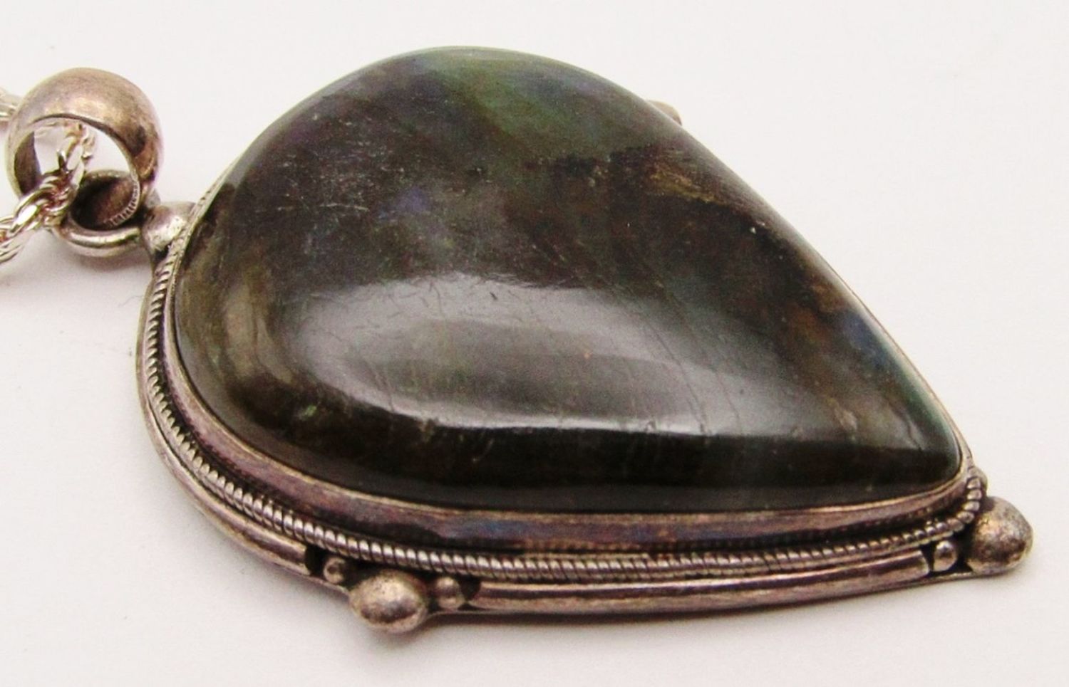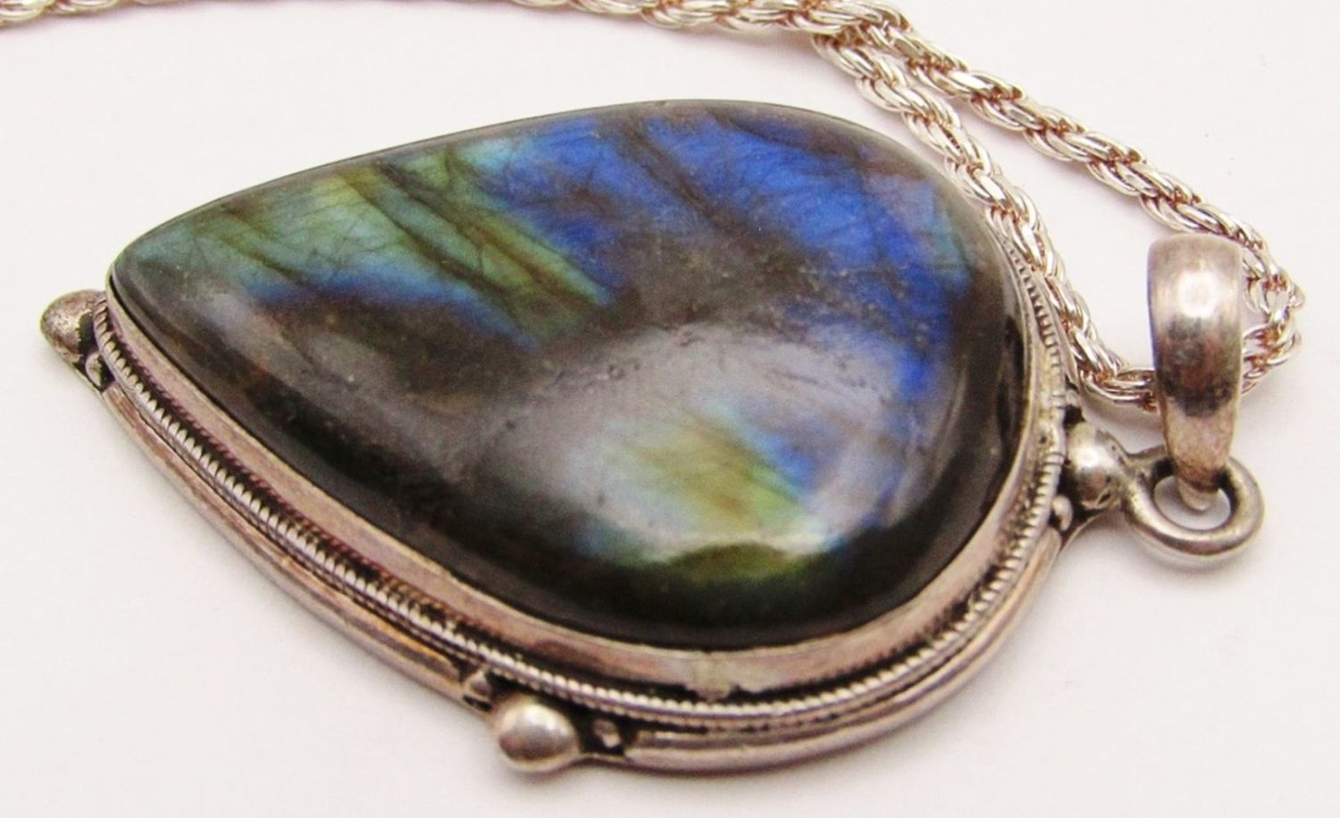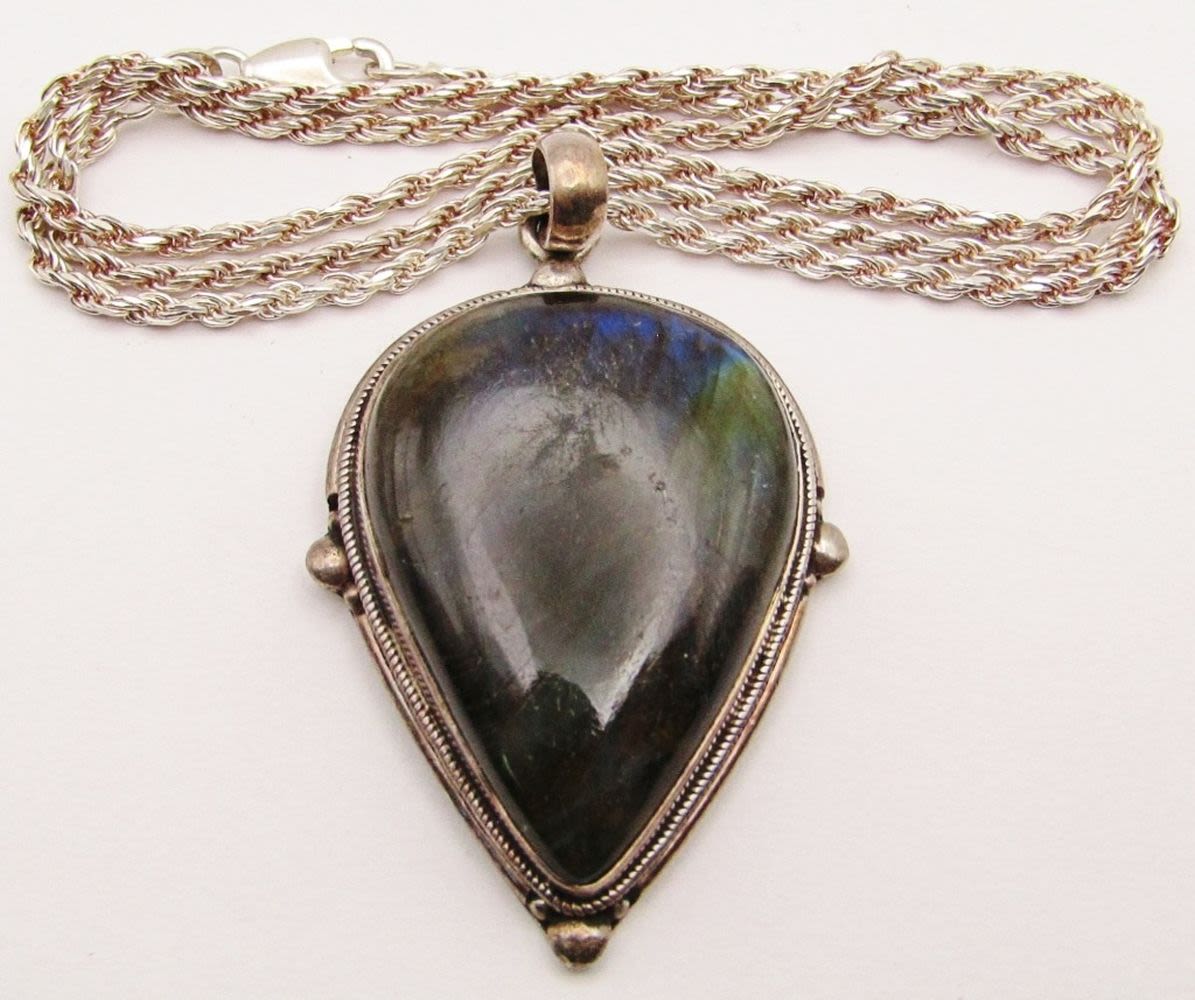 17" STERLING NECKLACE WITH LARGE LABRADORITE STONE
