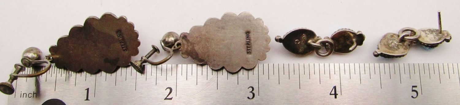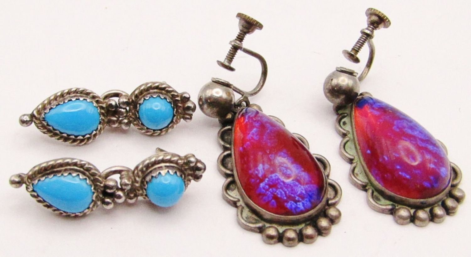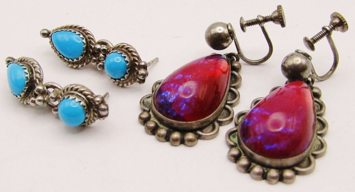 WITH TURQUOISE PIERCED EARRING AND ONE VINTAGE TWIST BACK WITH PINK MOONSTONE-17 DWT TOTAL