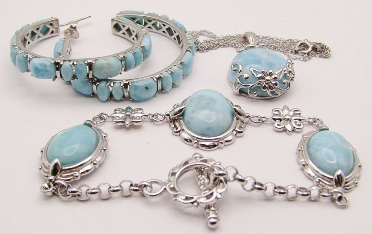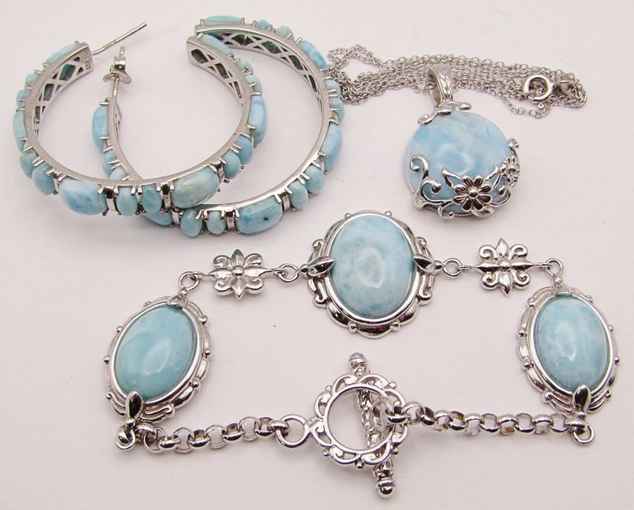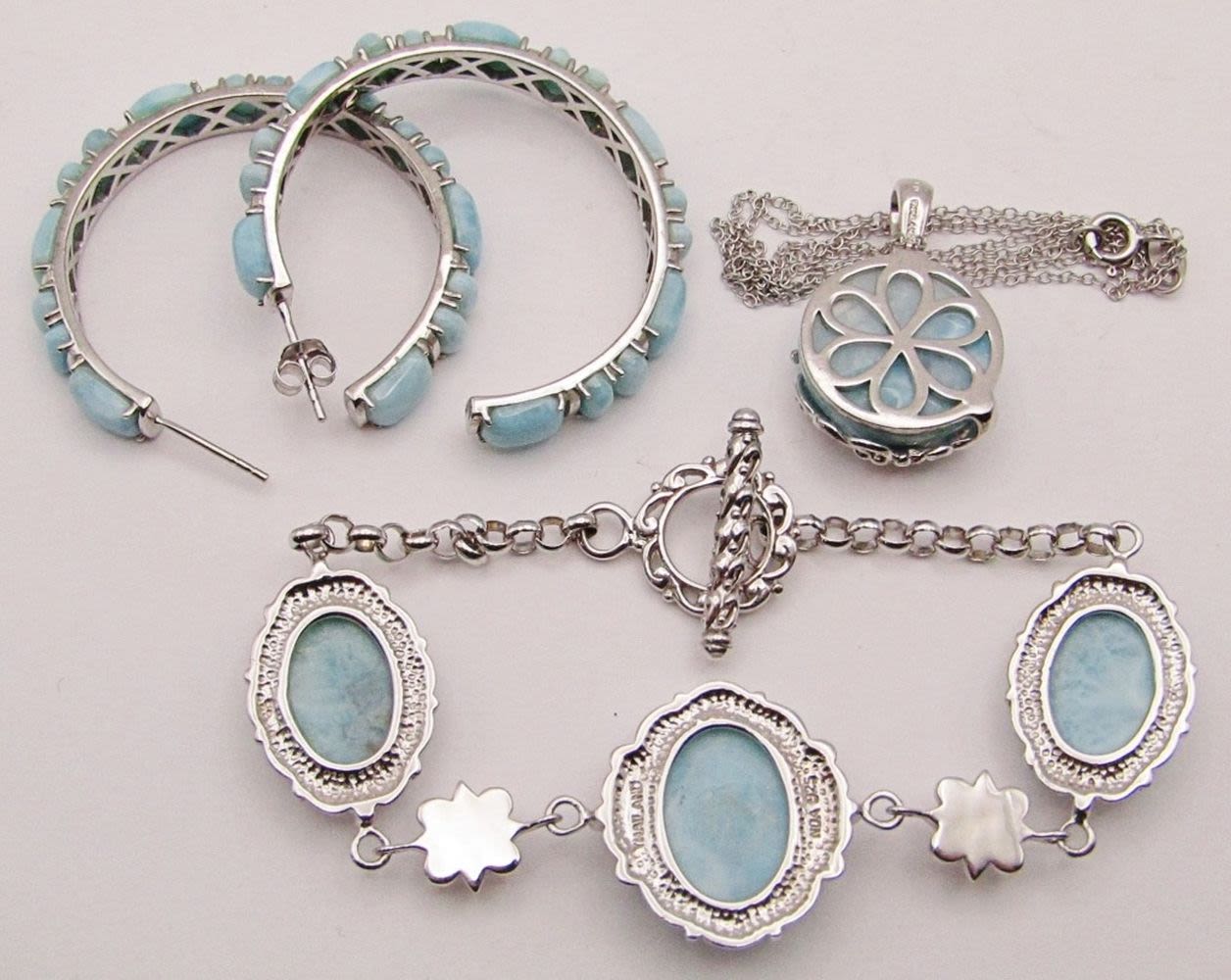 NECKLACE, BRACELET AND EARRINGS WITH LARIMAR STONES 22 DWT TOTAL