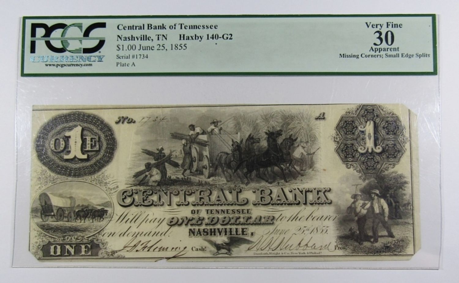 APPARENT MISSING CORNERS; SMALL EDGE SPLITS, CENTRAL BANK OF TENNESEE