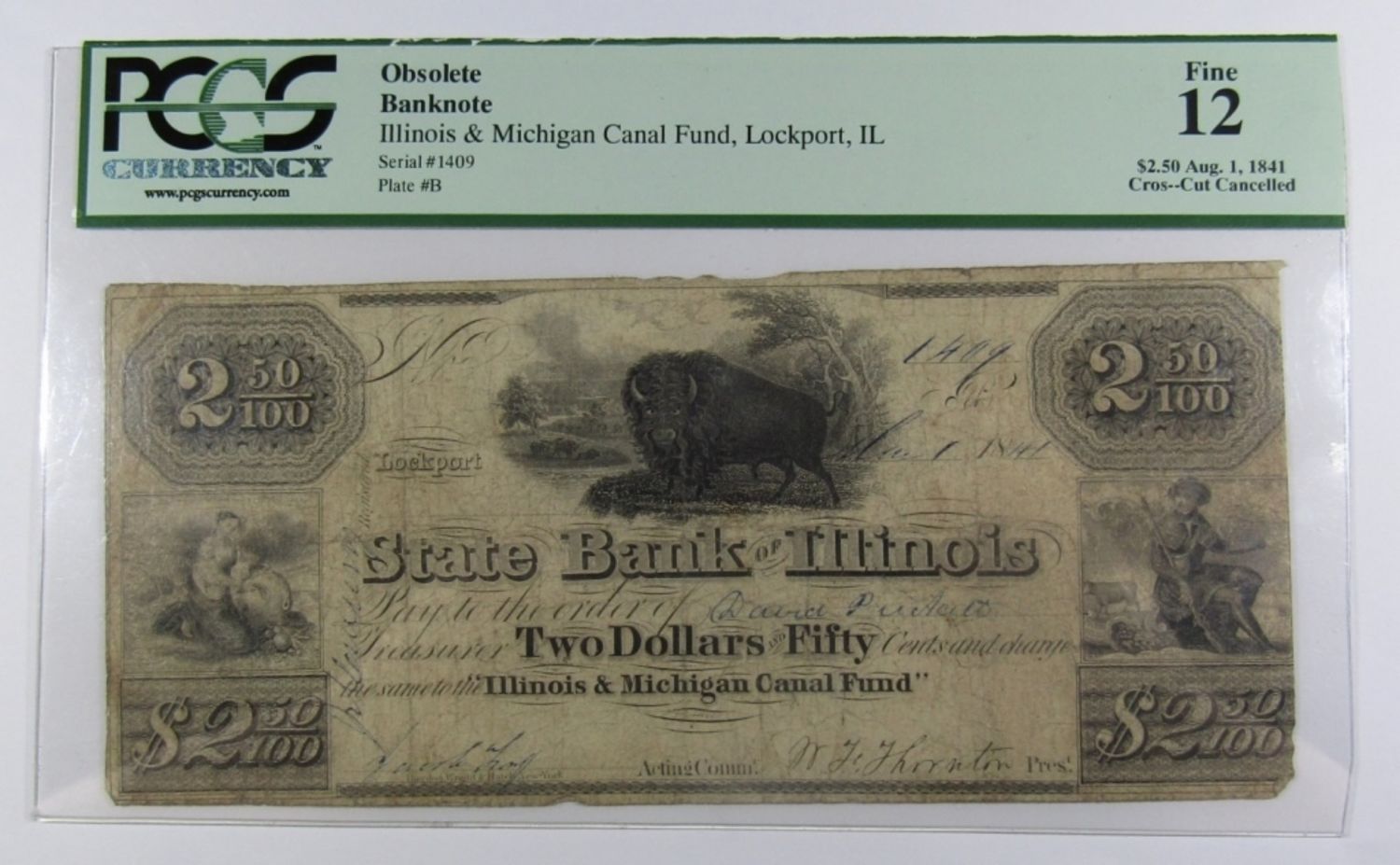 CROS–CUT CANCELLED, ILLINOIS & MICHIGAN CANAL FUND, LOCKPORT. PCGS HOLDER CUT OPEN ON RIGHT SIDE.