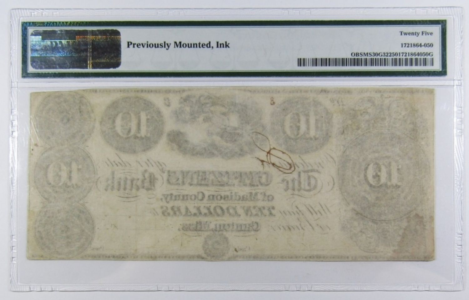 CITIZENS’ BANK OF MADISON COUNTY, CANTON. REMAINDER. PREVIOUSLY MOUNTED, INK