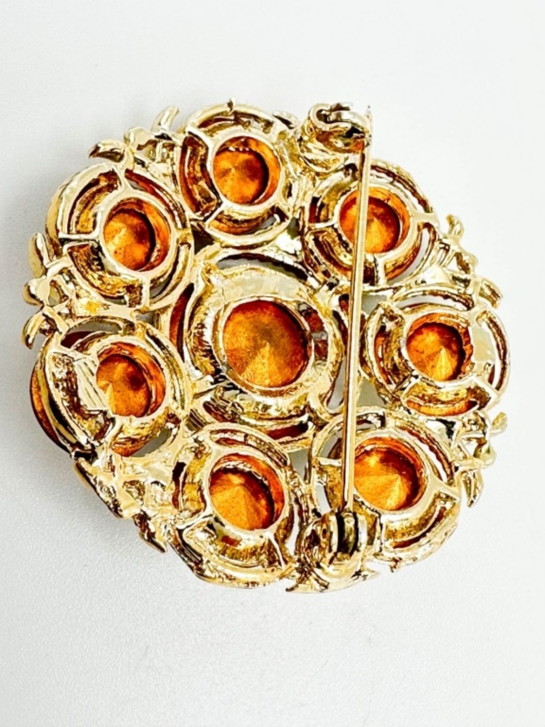 LARGE STONE BROOCH WITH CENTER POINT STONE ON GOLD TONES