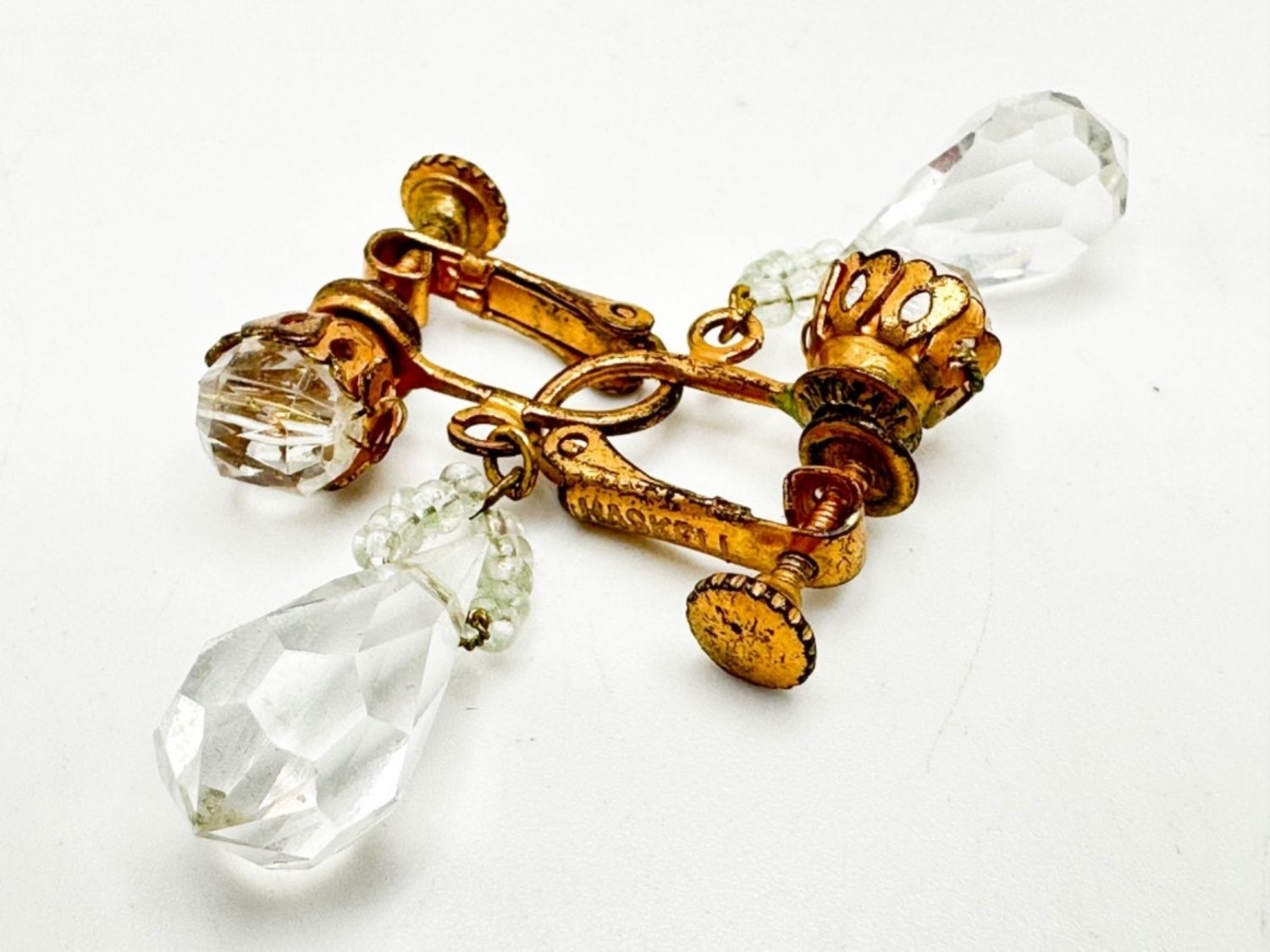 MIRIAM HASKELL SIGNED EARRINGS SET WITH DROP DANGLE CRYSTALS
