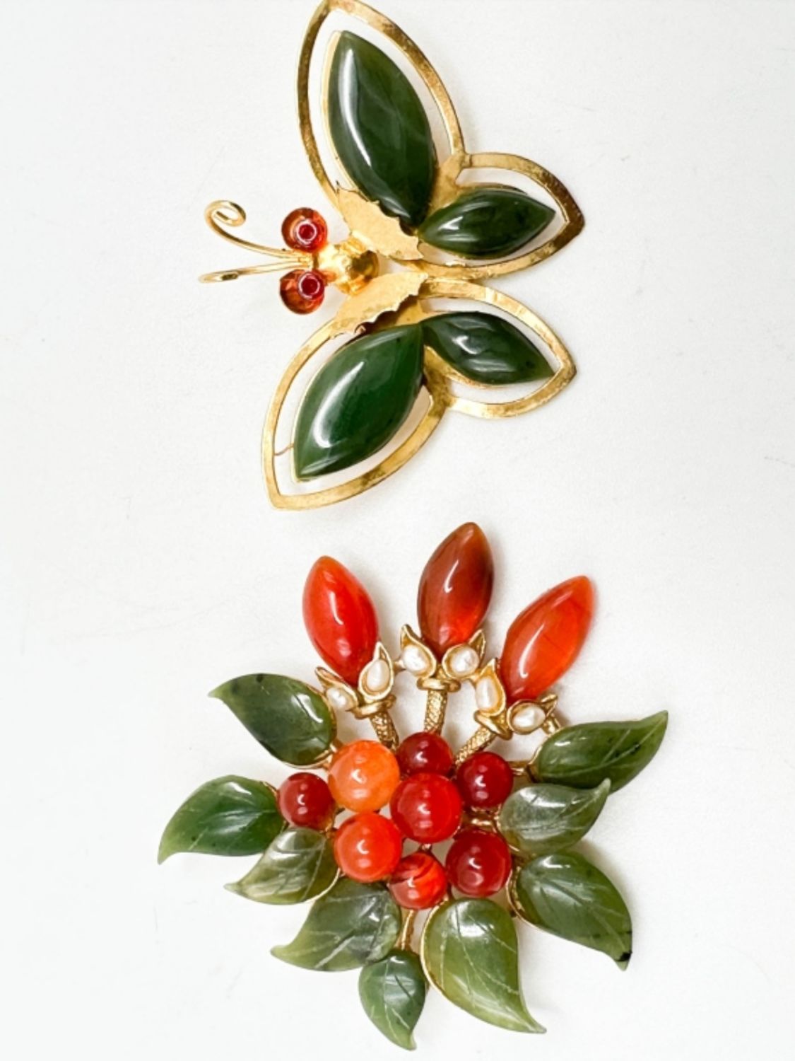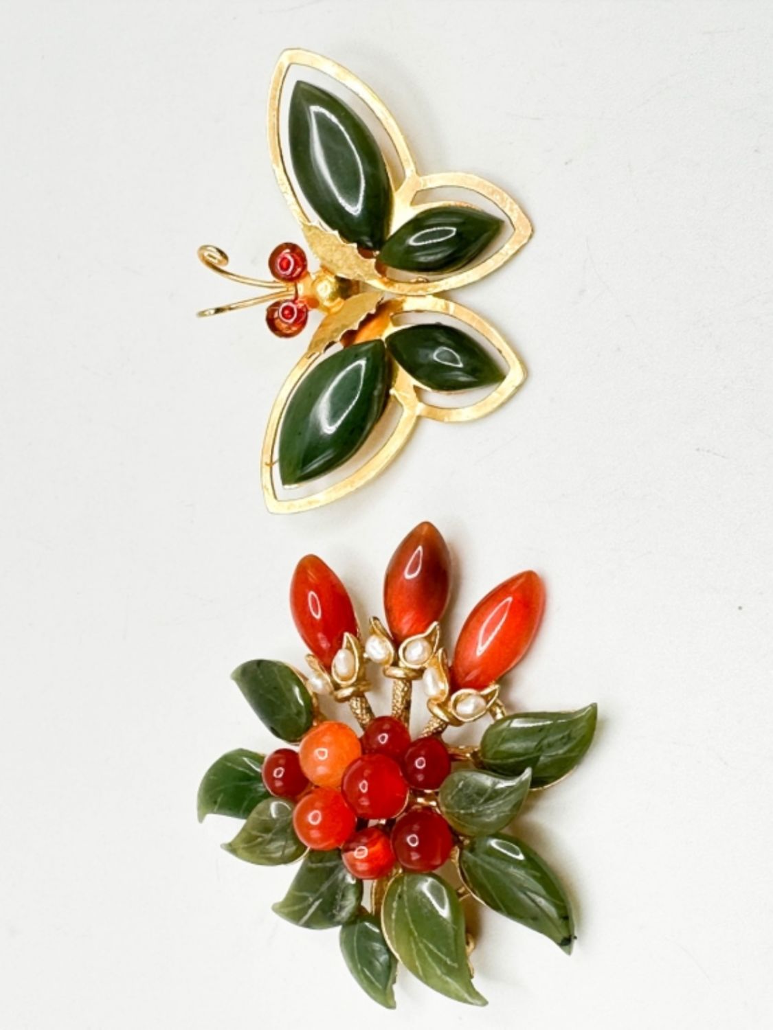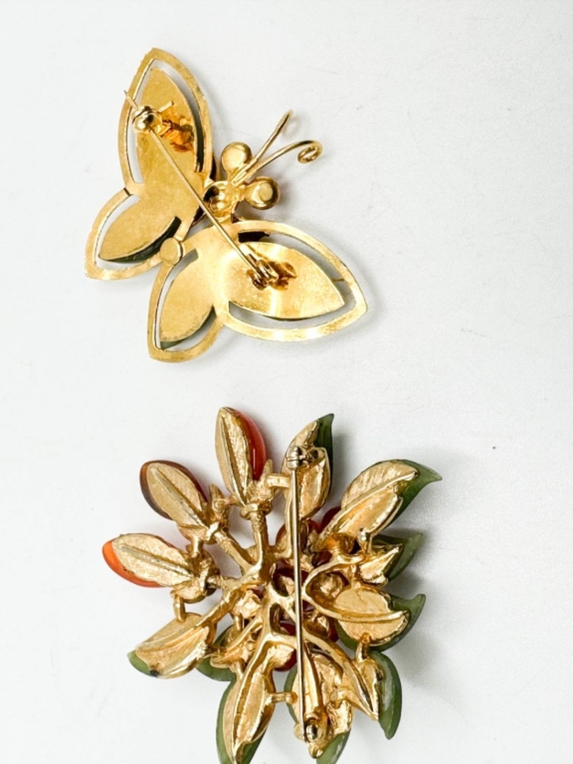 BUTTERFLY AND FLORAL BROOCHES WITIH STONES