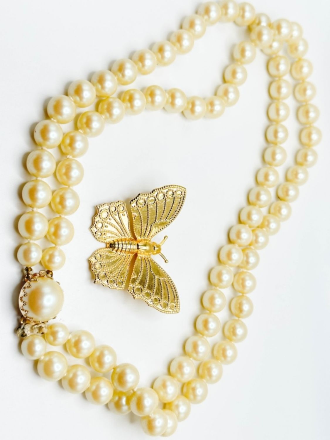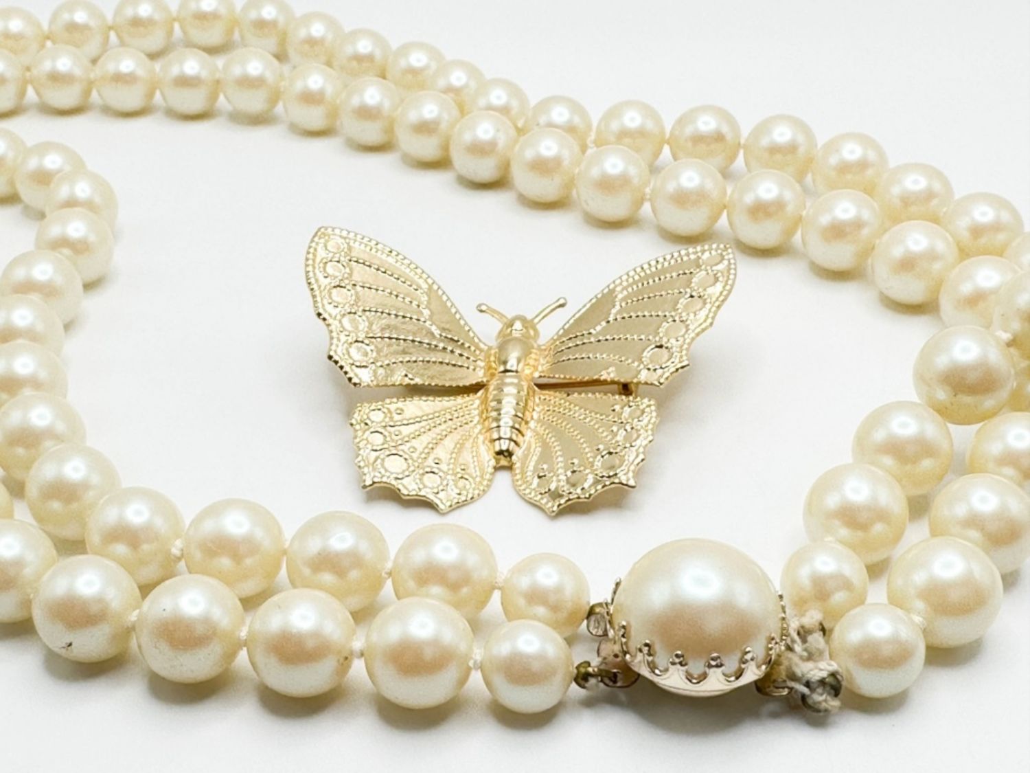 BUTTERFLY BROOCH AND VINTAGE NECKLACE