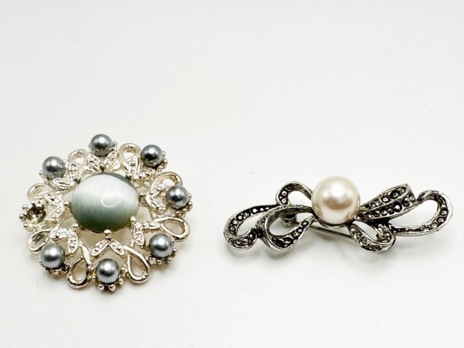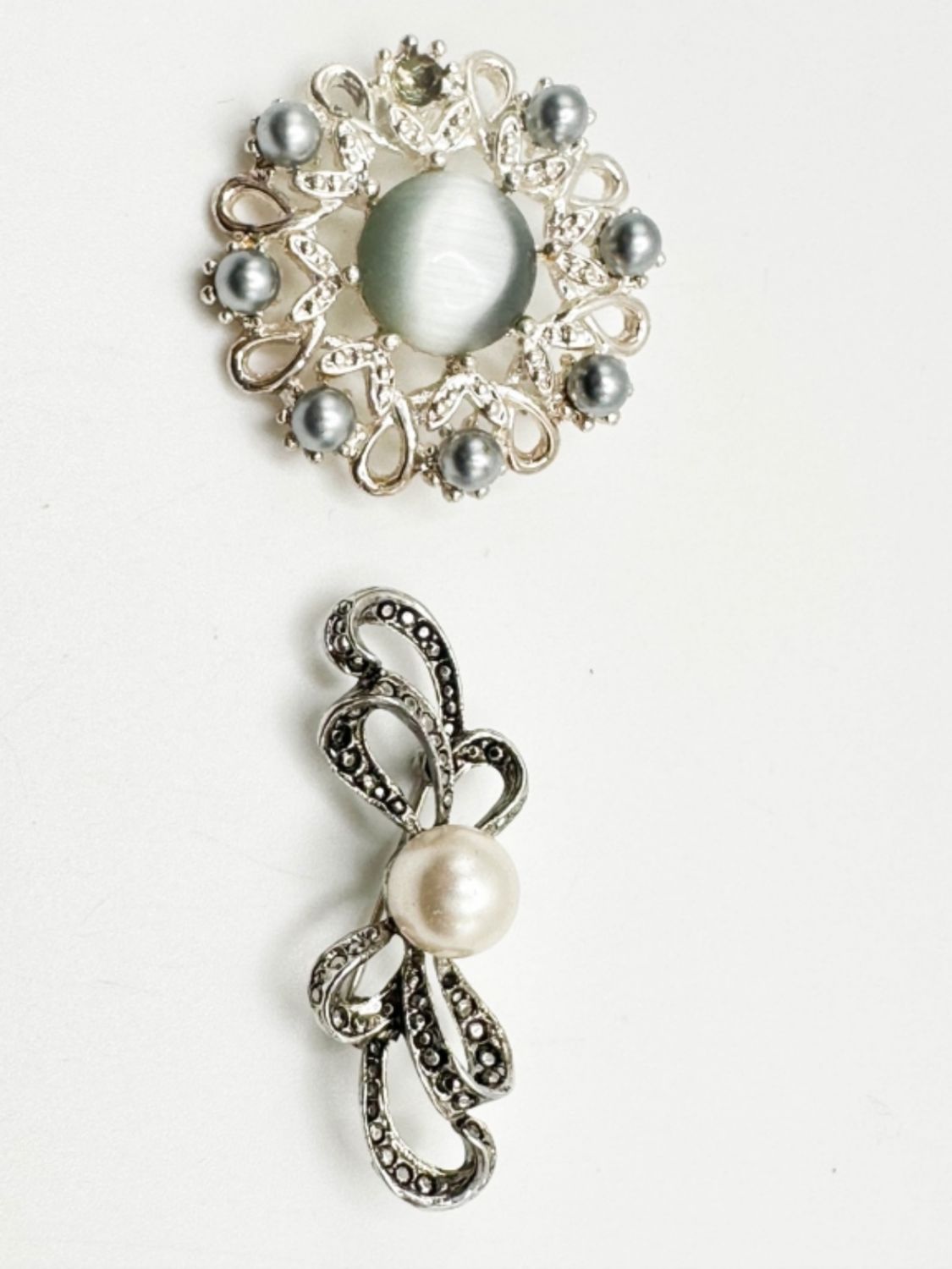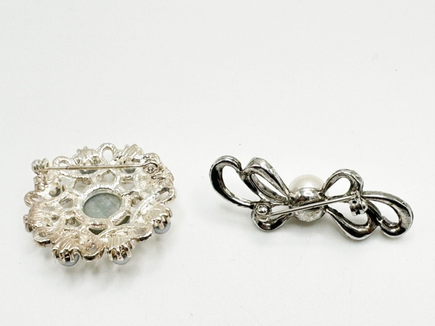 TWO SMALL BROOCHES, MISSING TWO STONES