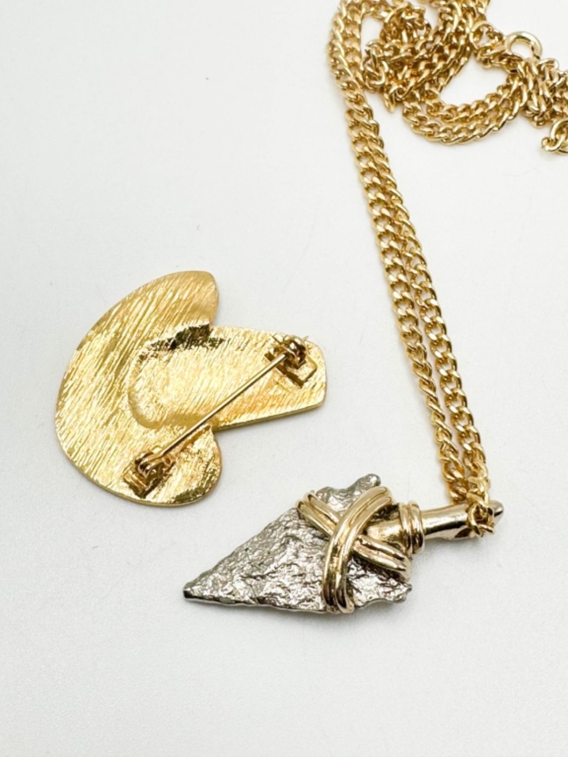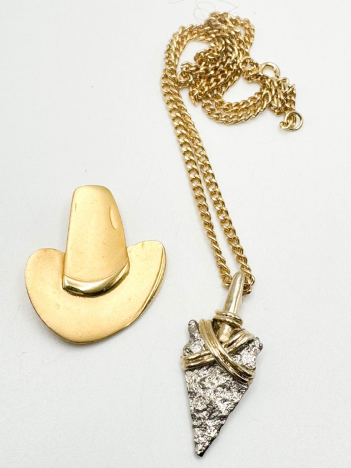 BUCKET HAT BROOCH AND ARROWHEAD NECKLACE