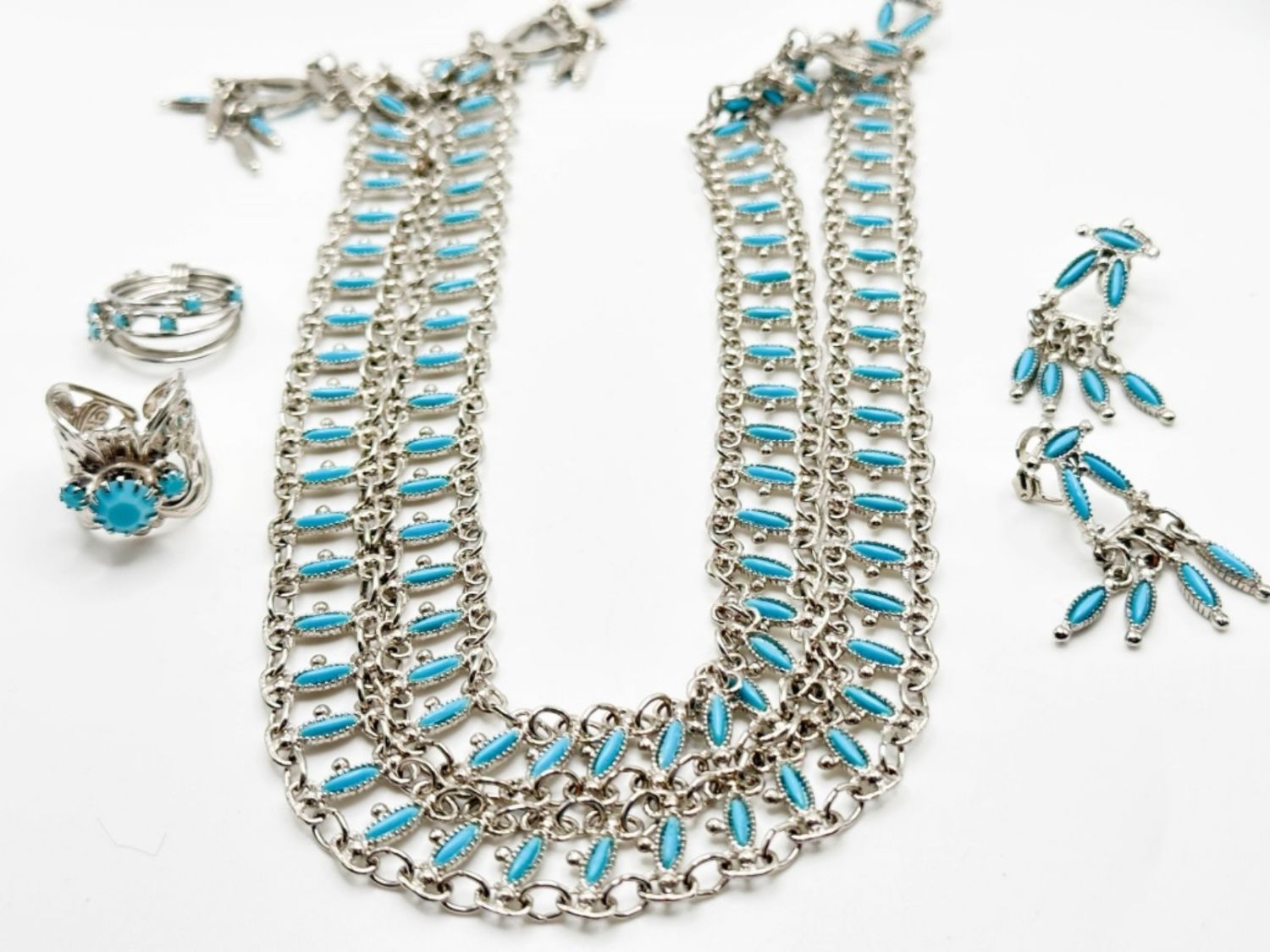 TURQUISE COLOR STONE DOUBLE STRAND NECKLACE AND MORE