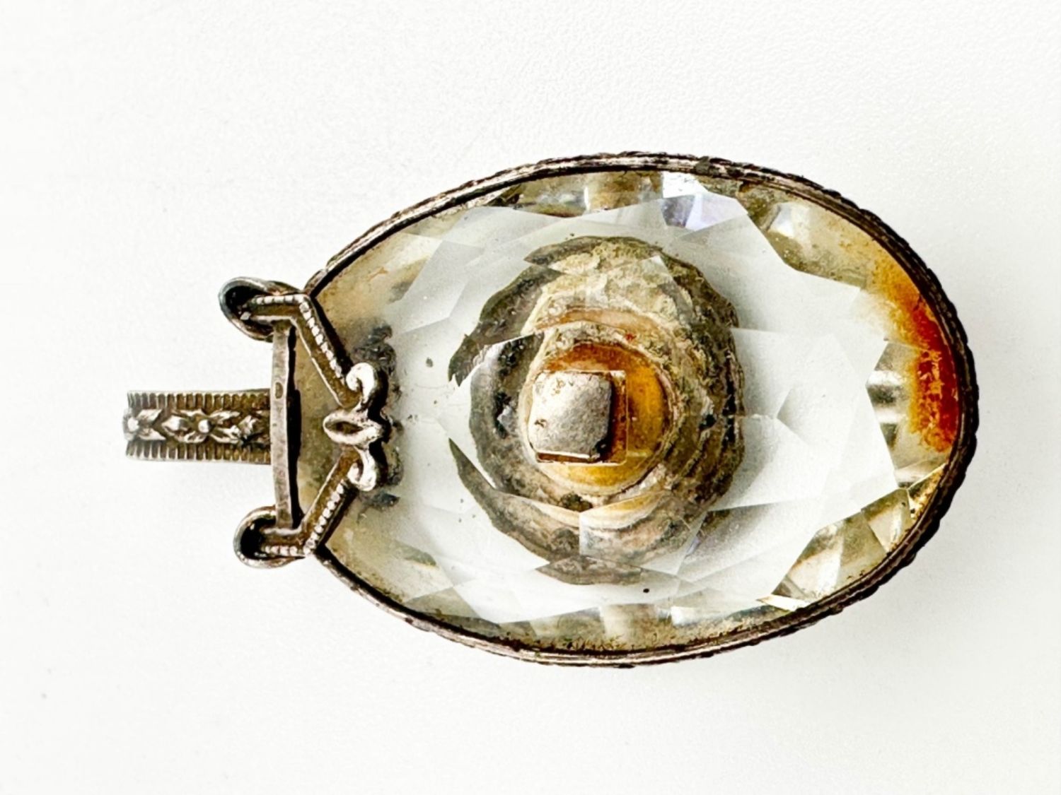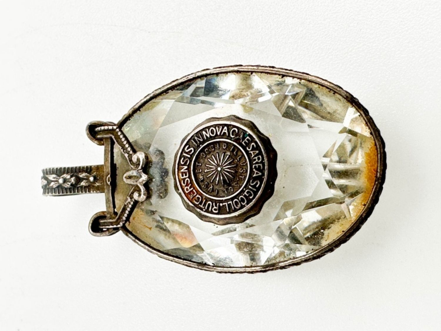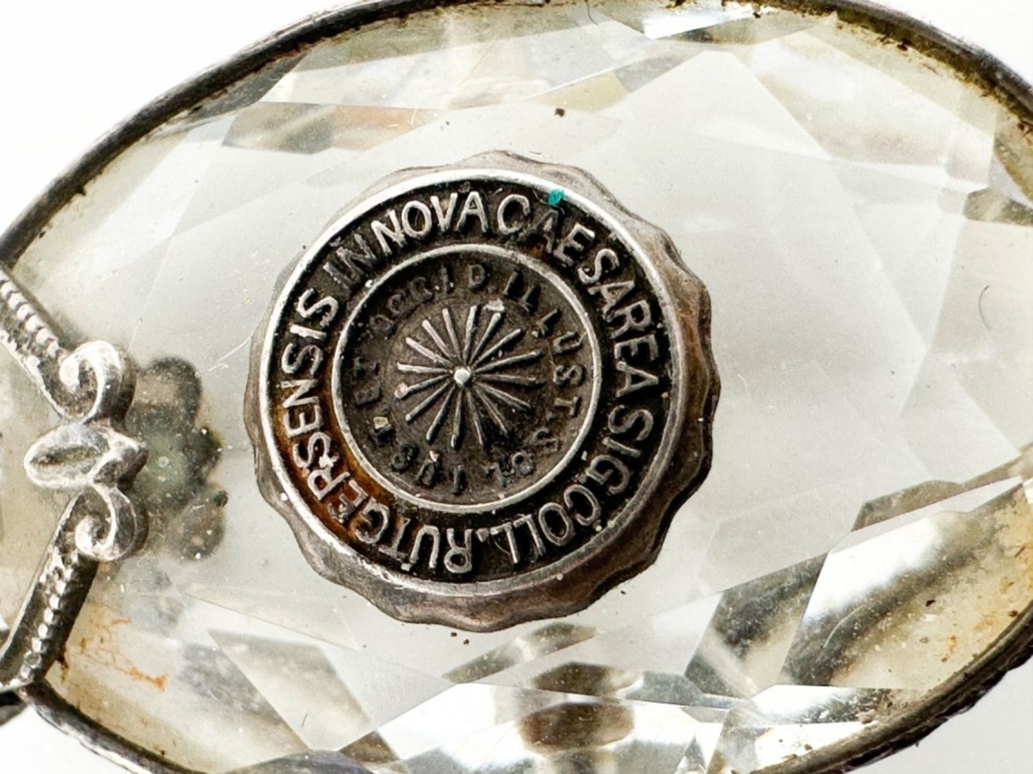 ANTIQUE? GLASS PENDANT W INSIGNIA
