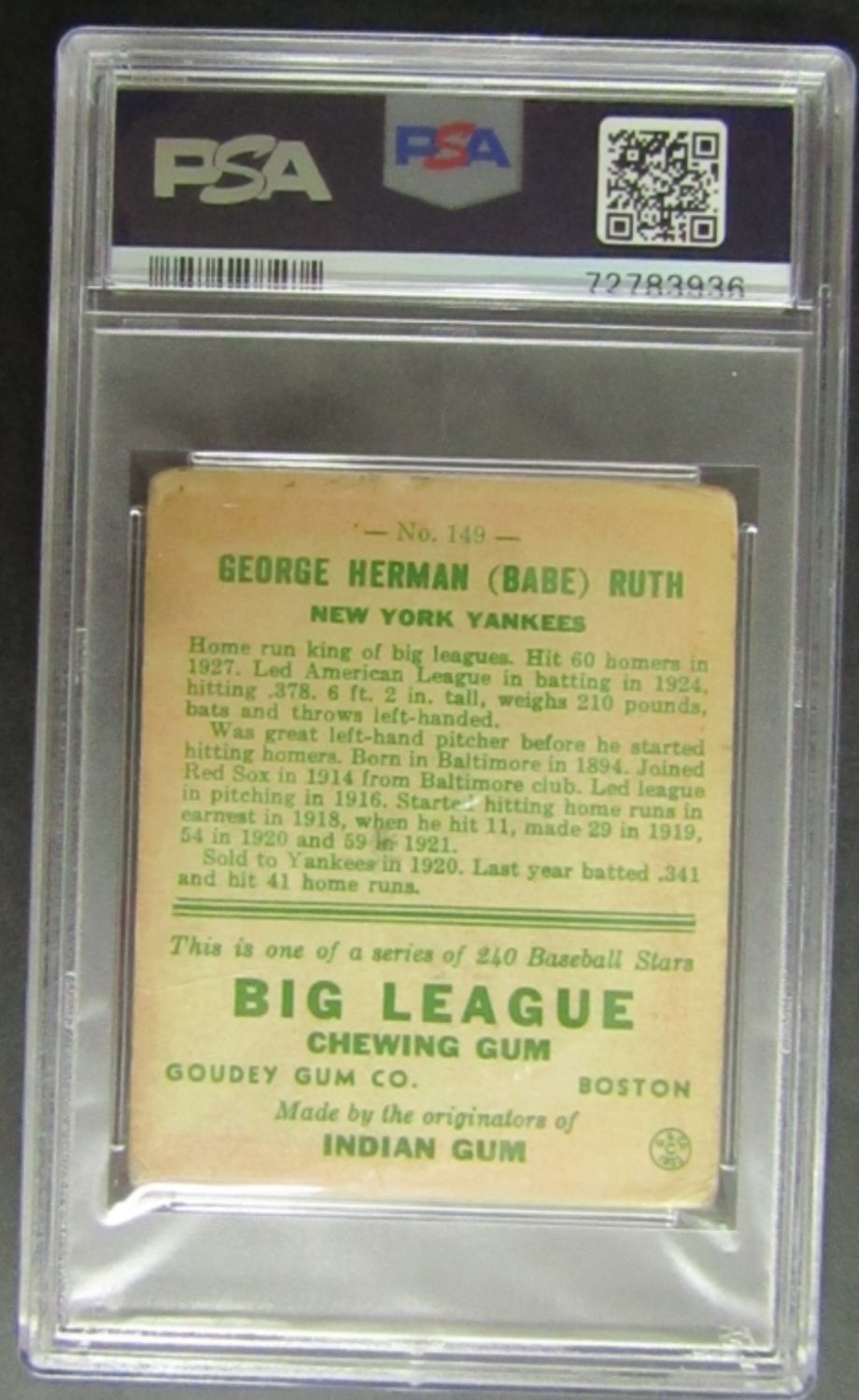RARE BIG LEAGUE BABE RUTH ROOKIE PSA 1