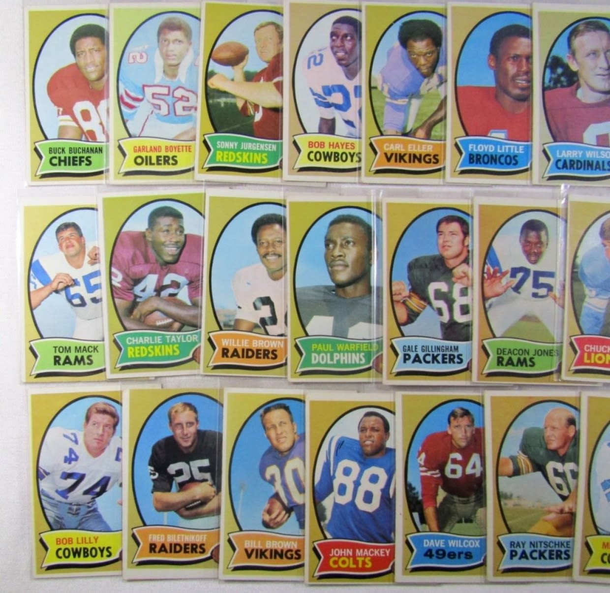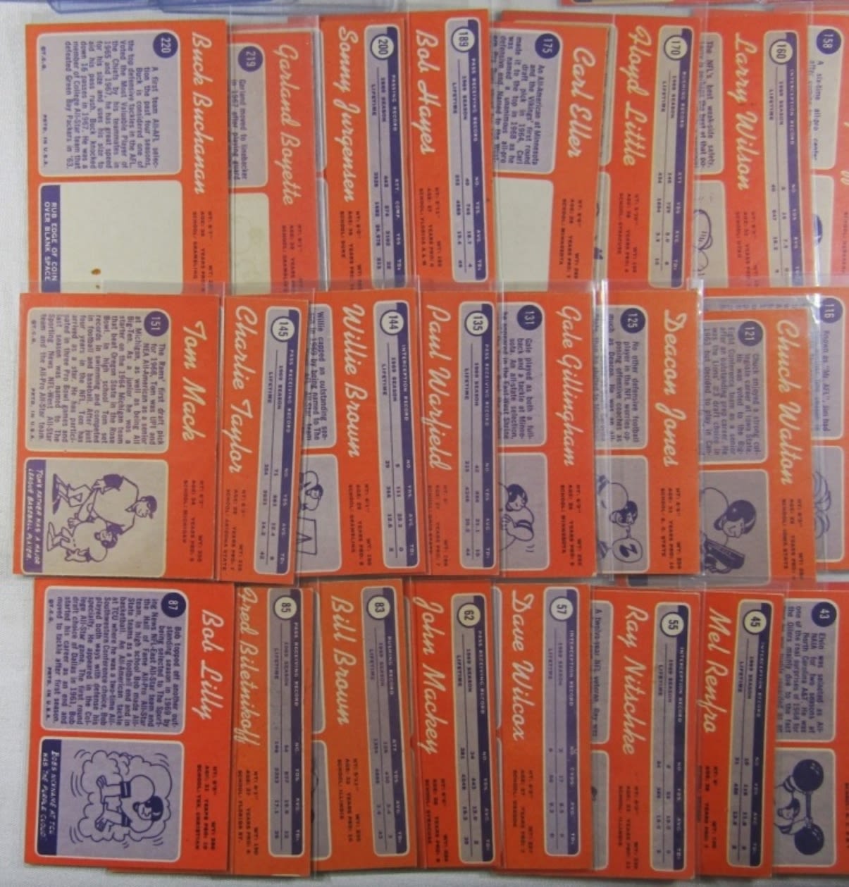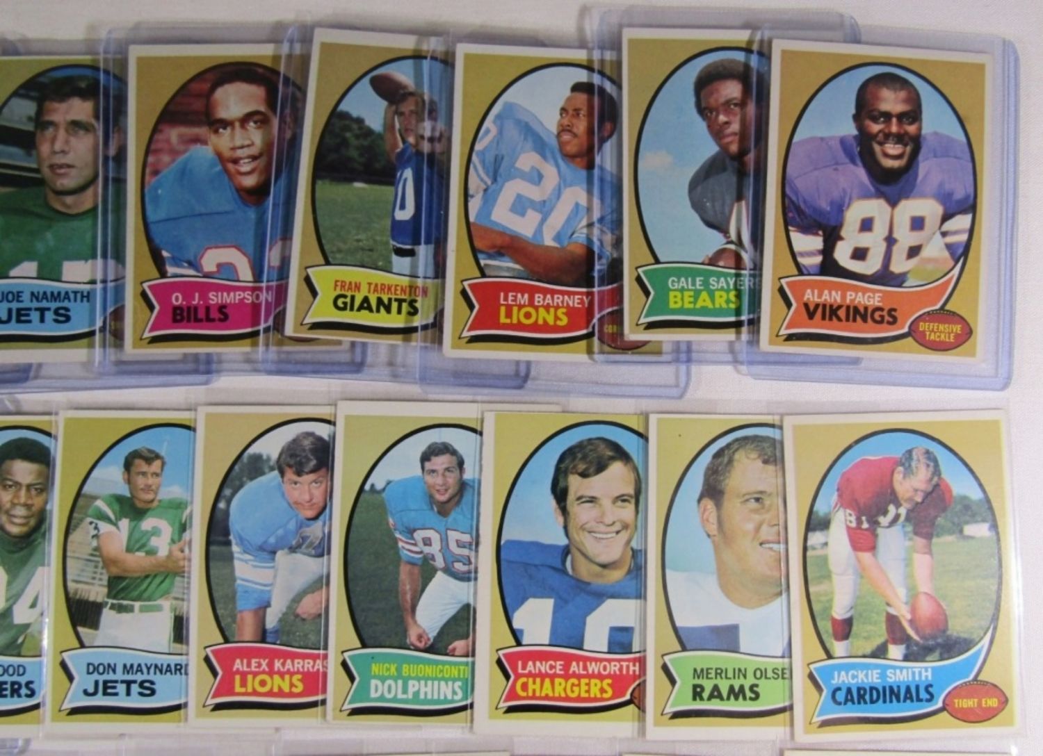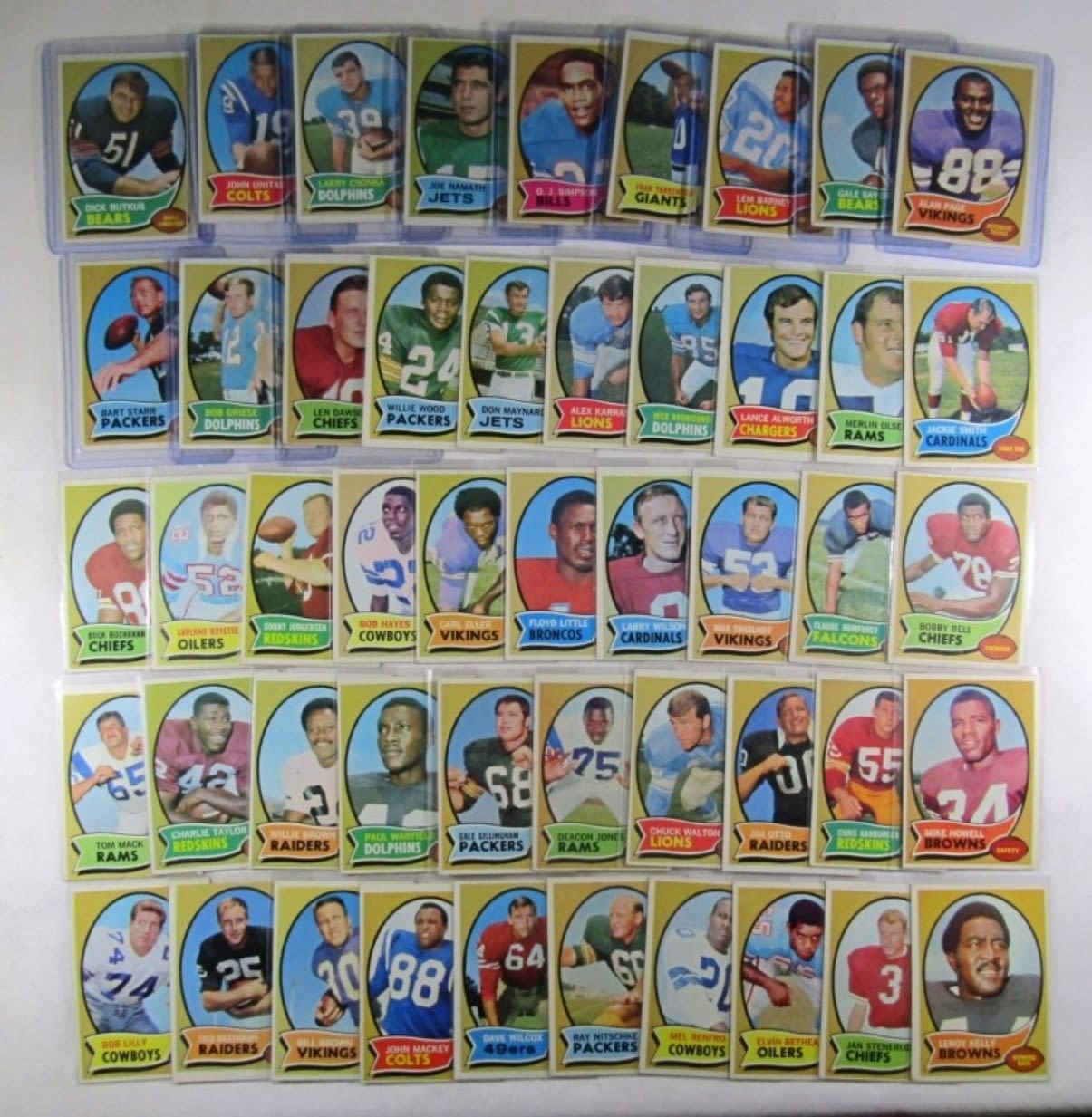 ALL DIFFERENT – VERY NICE EX++ , SOME EM , SOME VGEX+ – VERY CLEAN SURFACE – includes #1 DAWSON, 10 GRIESE, 30 STARR, 59 PAGE (R), 70 SAYERS, 75 BARNEY, 80 TARKENTON, 90 O.J. SIMPSON (R), 150 NAMATH, 162, CSONKA, 180