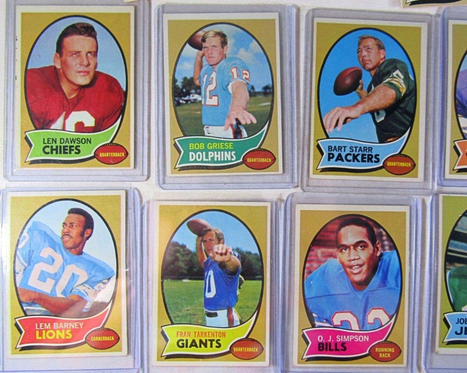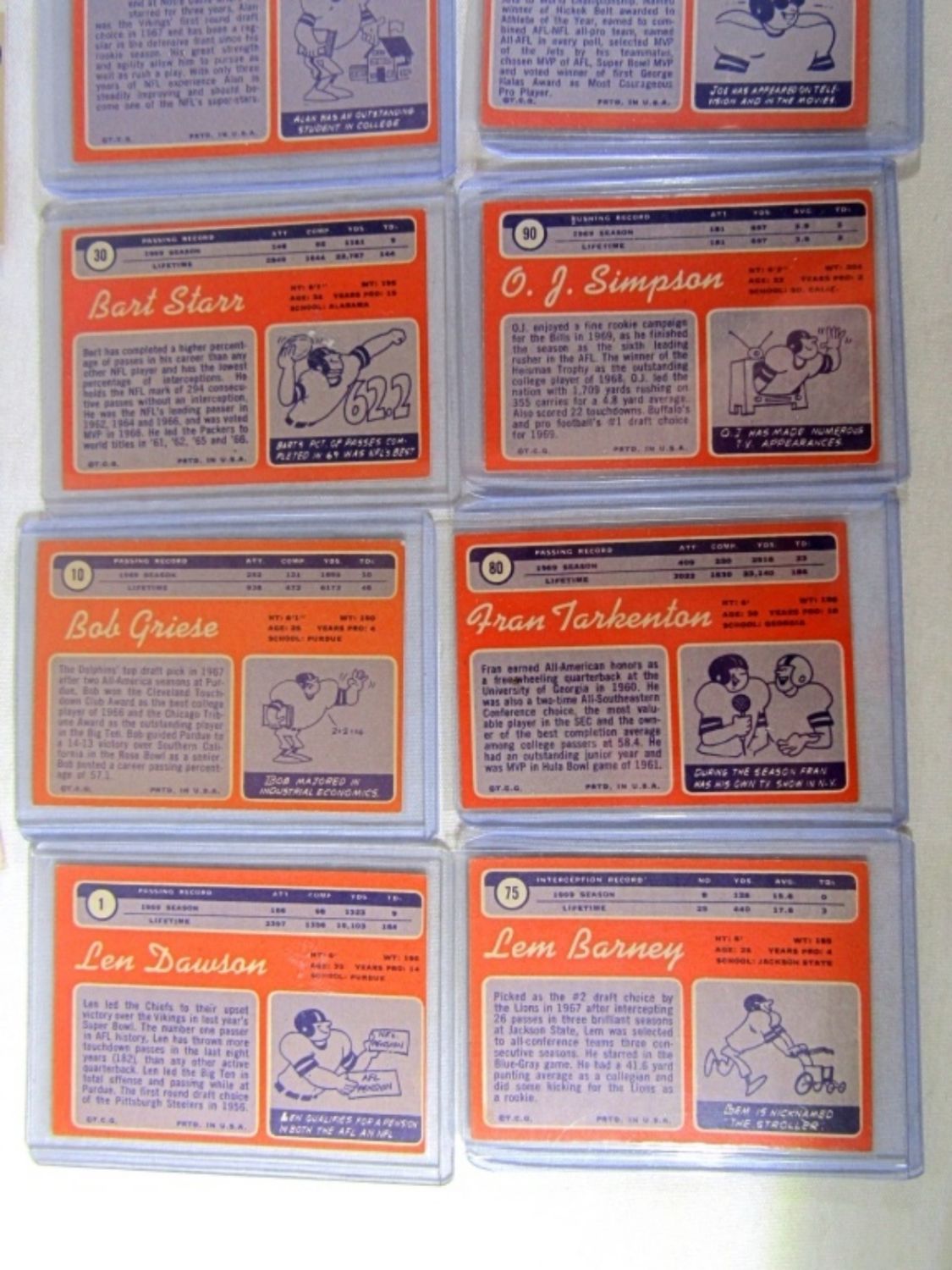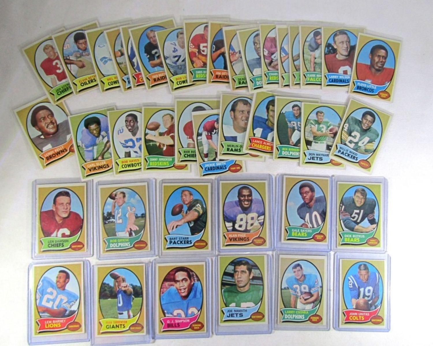 ALL DIFFERENT – VERY NICE EX++ , SOME EM , SOME VGEX+ – VERY CLEAN SURFACE – includes #1 DAWSON, 10 GRIESE, 30 STARR, 59 PAGE (R), 70 SAYERS, 75 BARNEY, 80 TARKENTON, 90 O.J. SIMPSON (R), 150 NAMATH, 162, CSONKA, 180