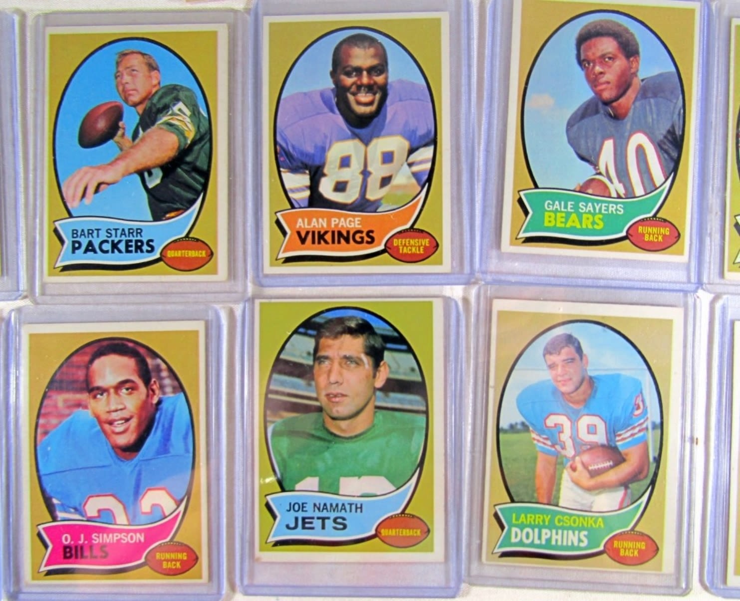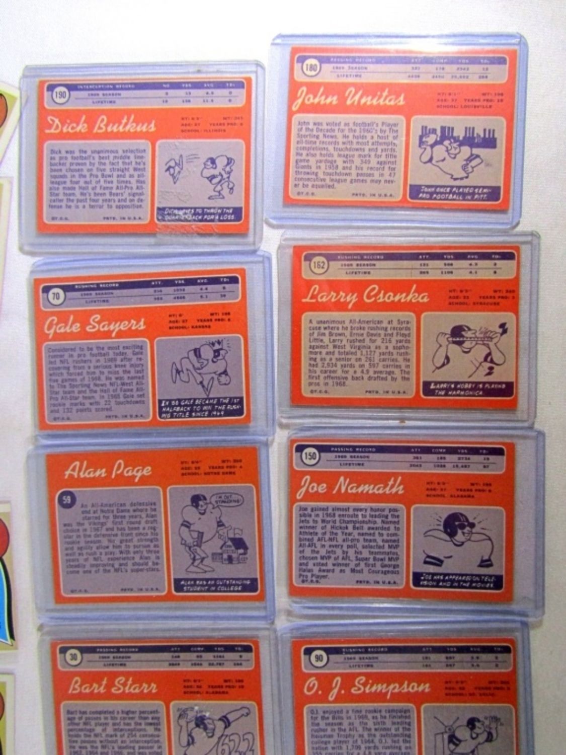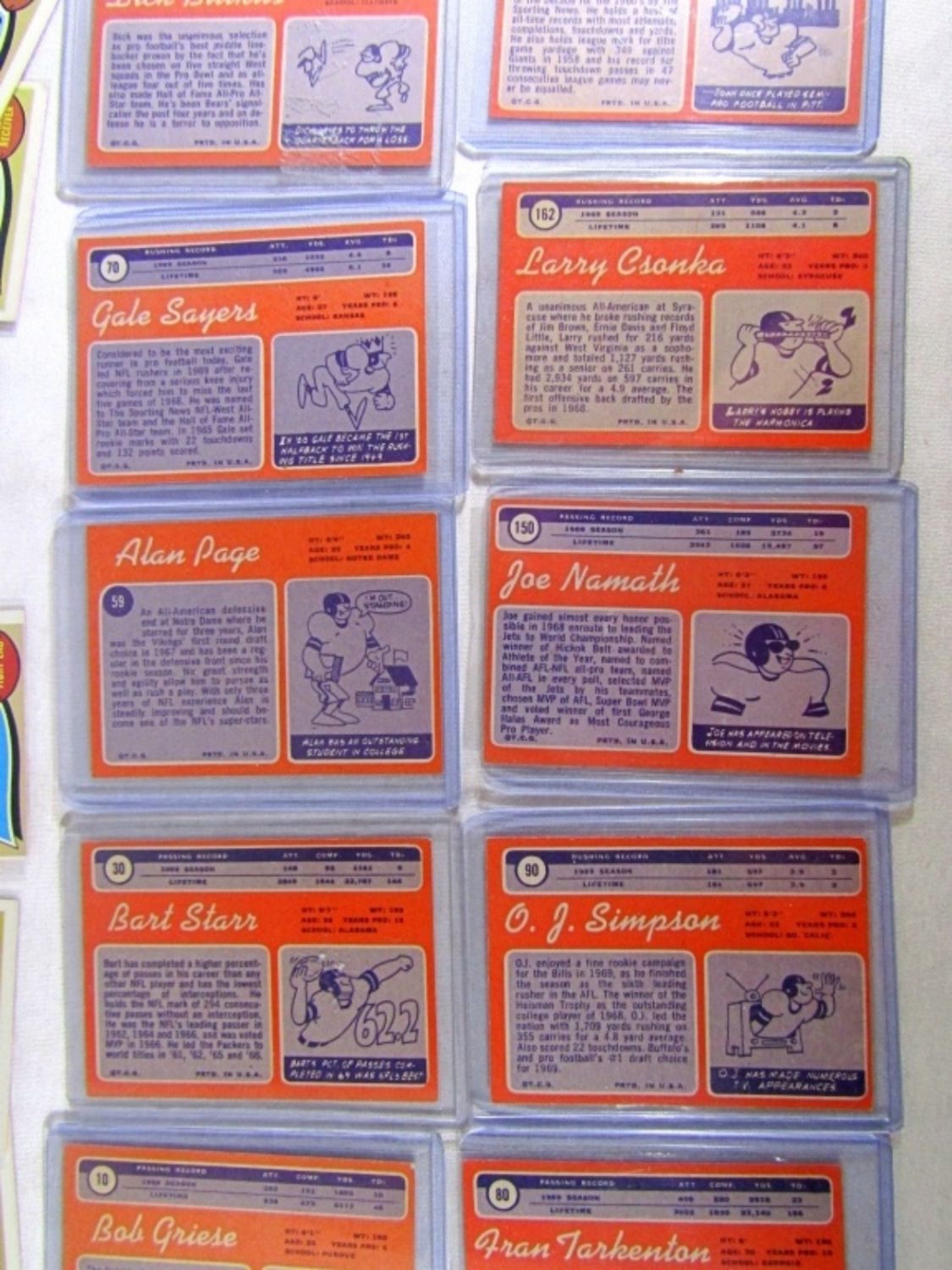 ALL DIFFERENT – VERY NICE EX++ , SOME EM , SOME VGEX+ – VERY CLEAN SURFACE – includes #1 DAWSON, 10 GRIESE, 30 STARR, 59 PAGE (R), 70 SAYERS, 75 BARNEY, 80 TARKENTON, 90 O.J. SIMPSON (R), 150 NAMATH, 162, CSONKA, 180