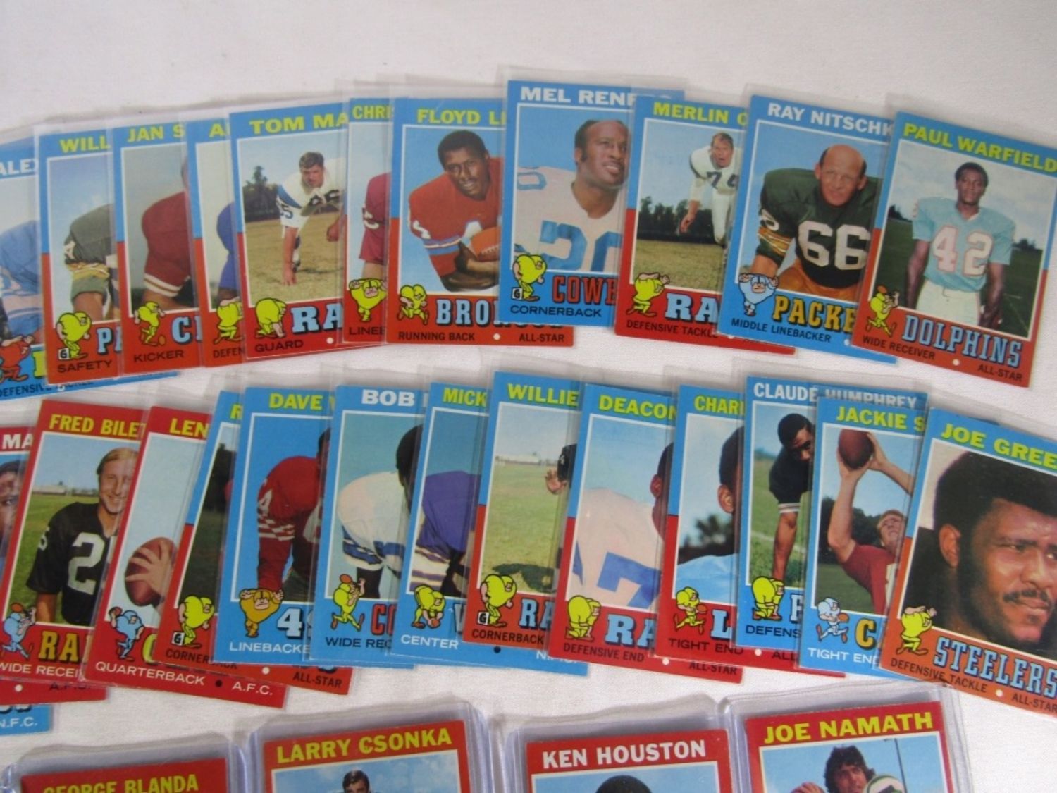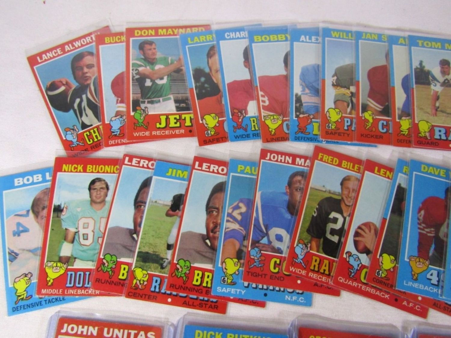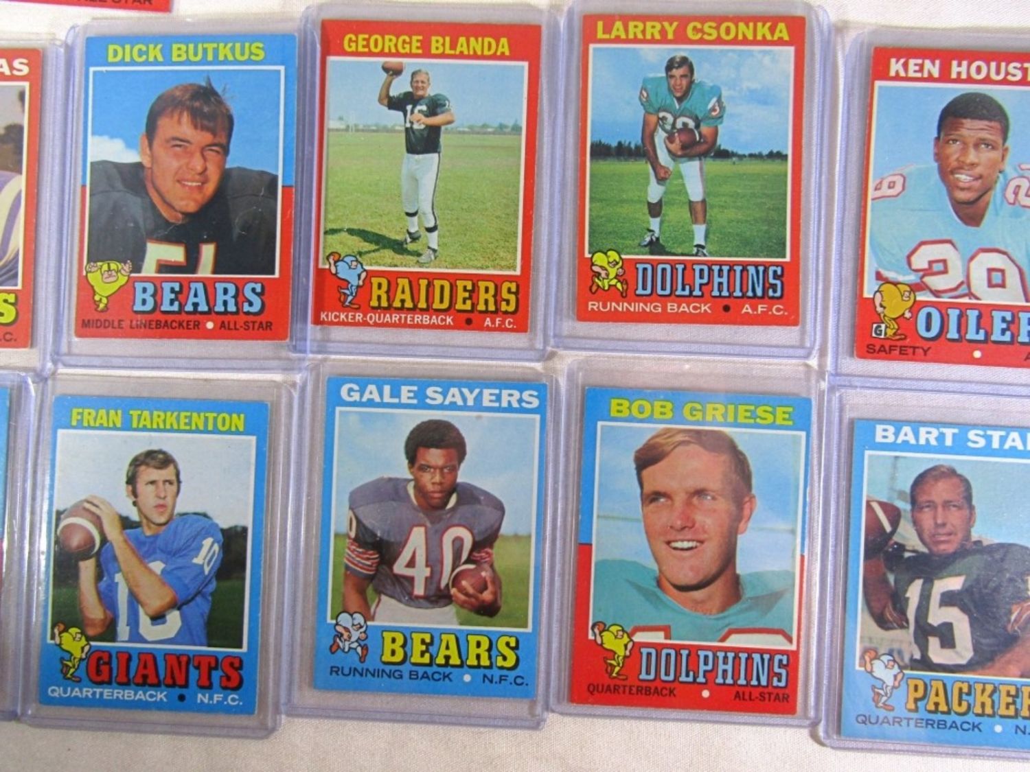 ALL DIFFERENT – VERY NICE EX-VGEX+, SOME EM, FEW VG+ includes #1 UNITAS, #25 BUTKUS, #39 BLANDA, #45 CSONKA, #113 HOUSTON, #114 LANIER, #120 TARKENTON, #150 SAYERS, #160 GRIESE, #200 STARR, #250 NAMATH, #260 SIMPSON