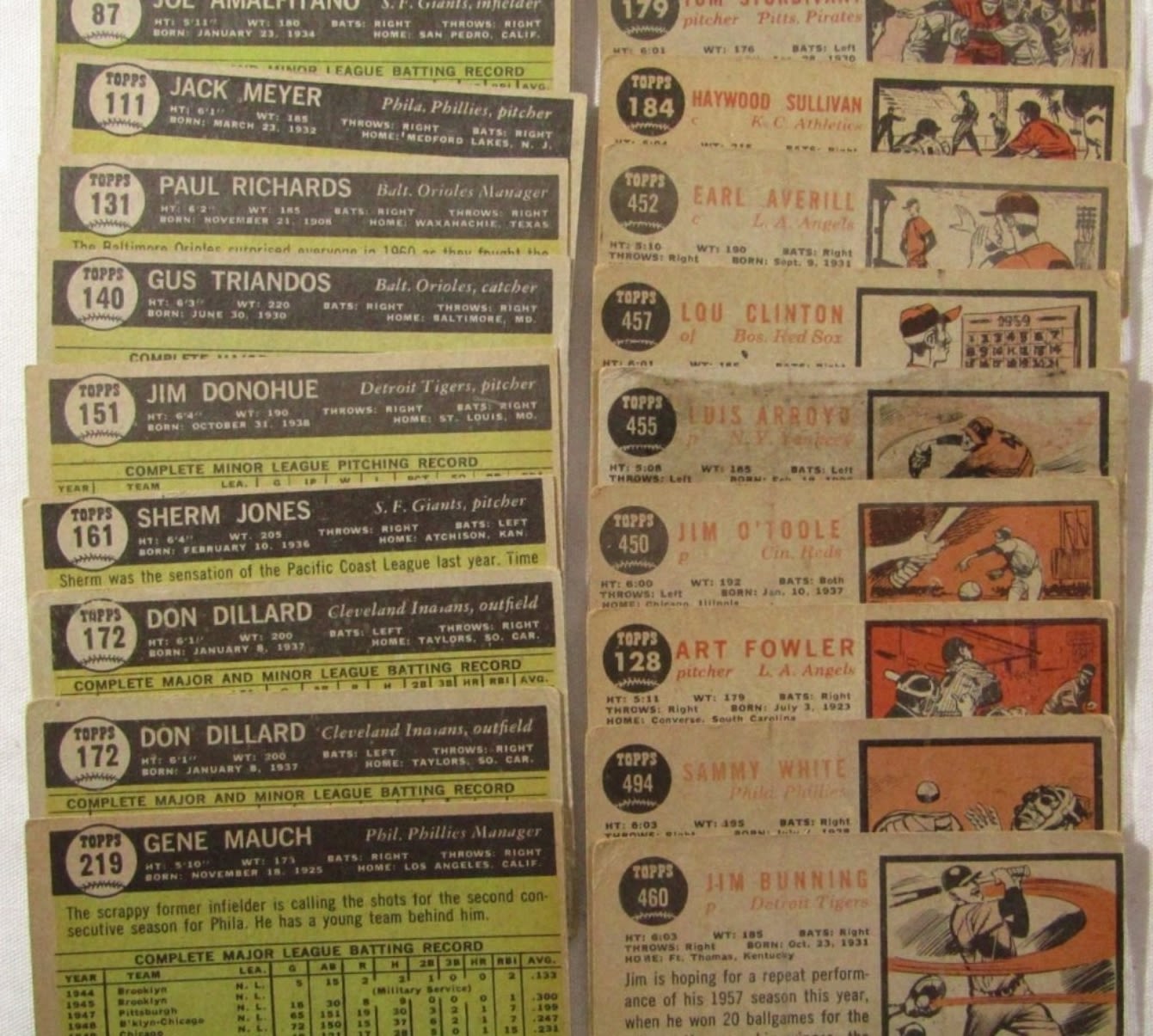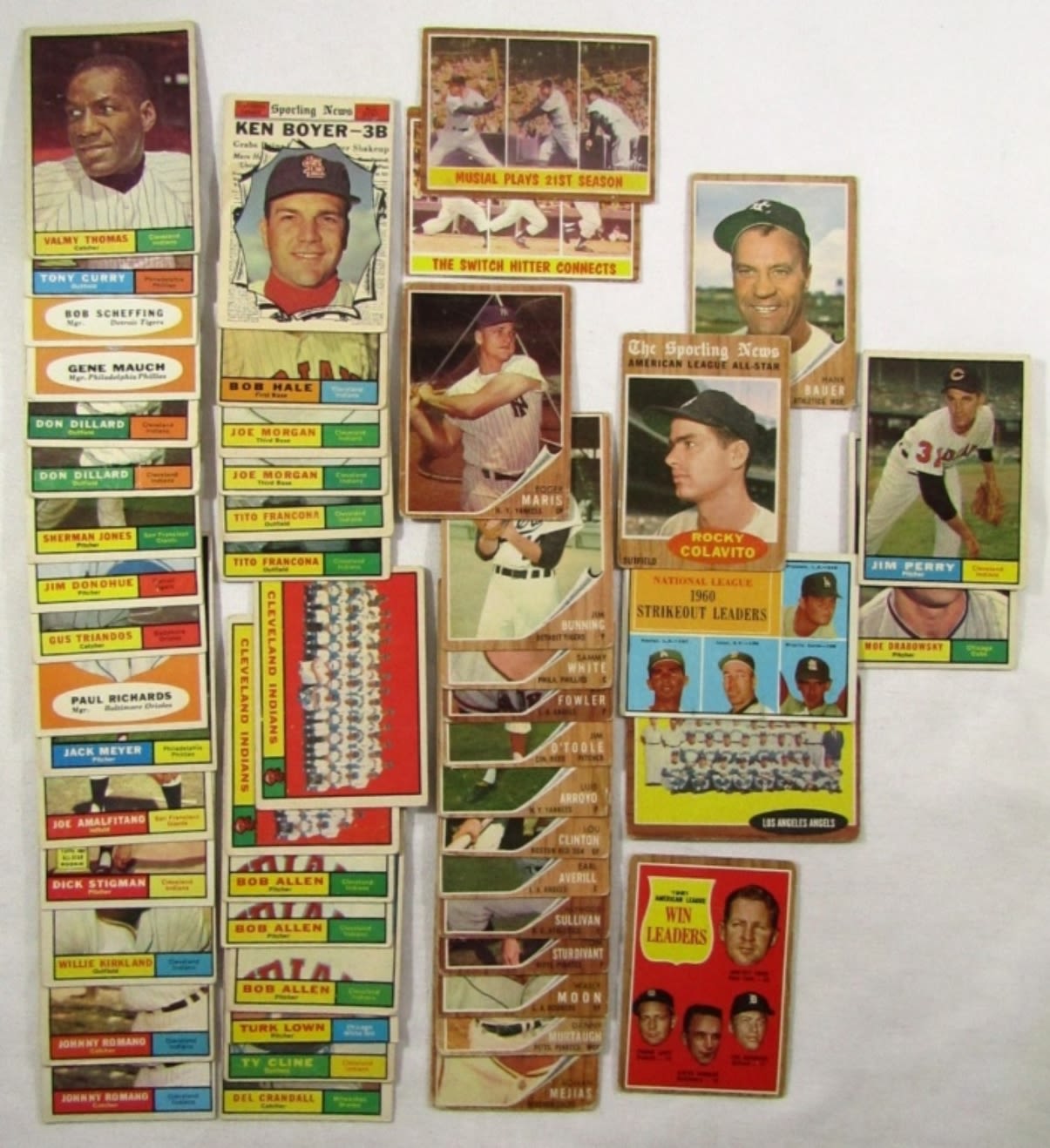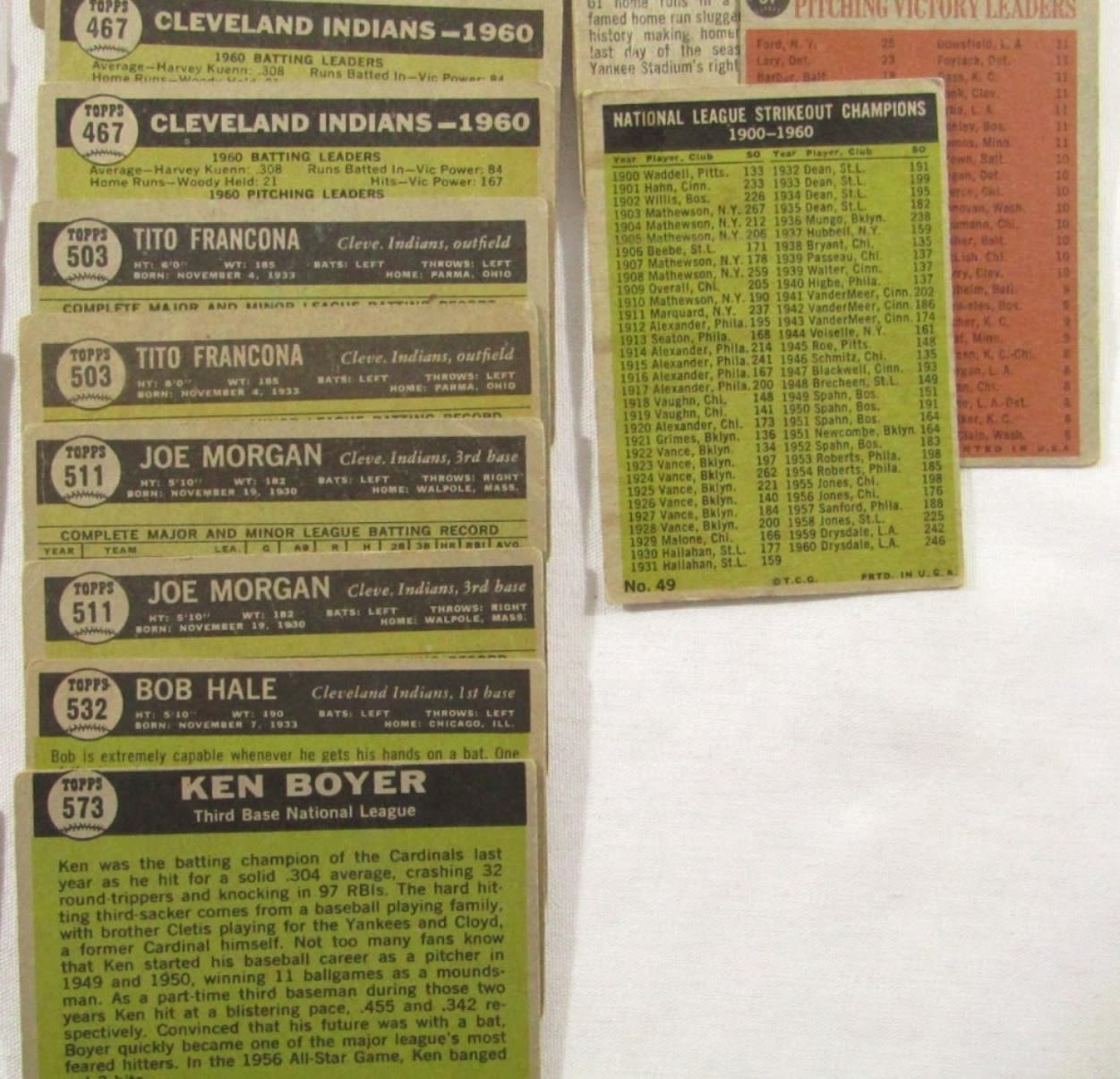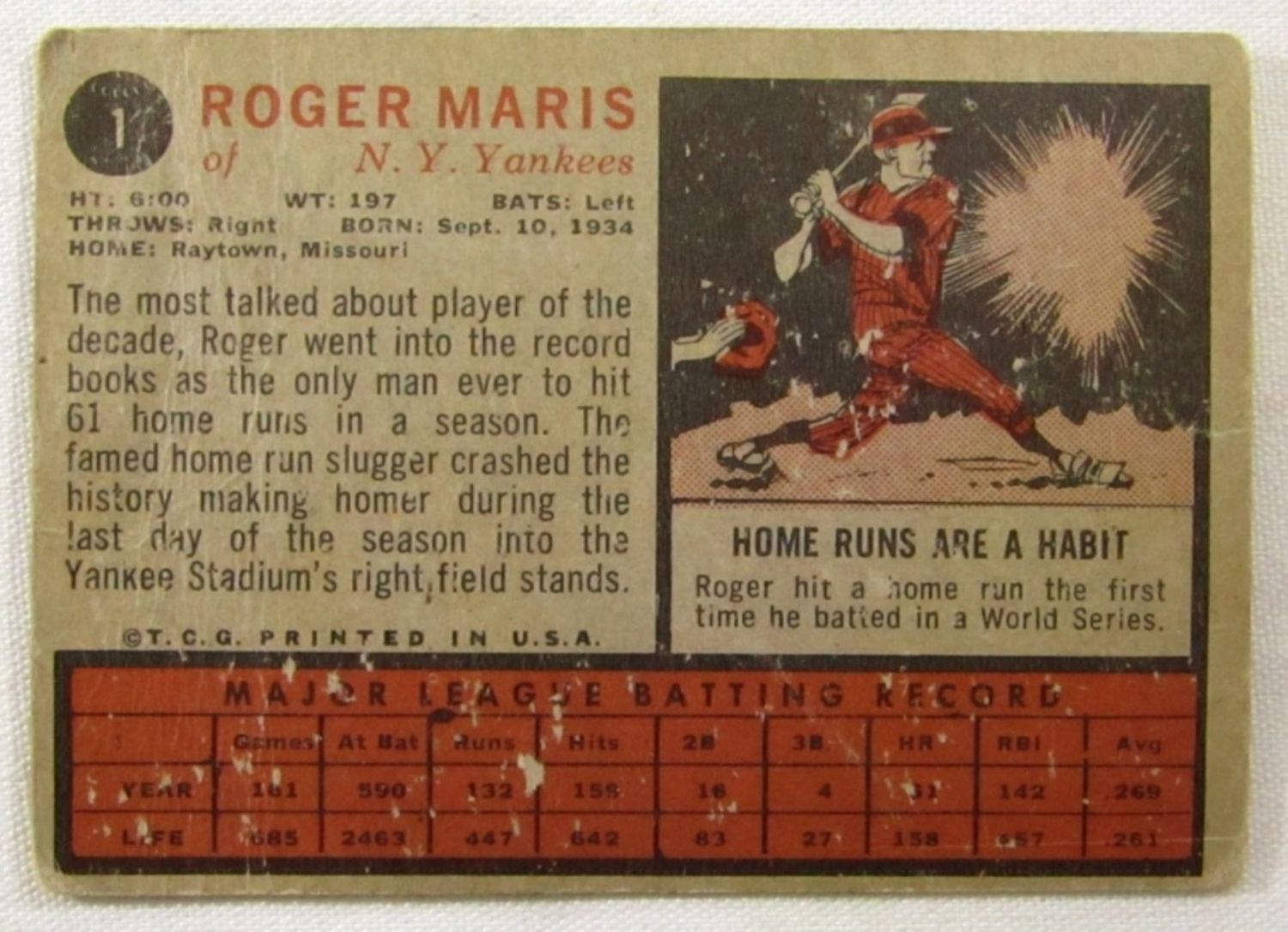 THIS LOT INCLUDES (33) 1961 TOPPS with 7 duplicates & #49 STRIKEOUT LDRS KOUFAX; (19) 1962 TOPPS with #1 ROGER MARIS FAIR/GOOD KEY CARD, # 318 MICKEY MANTLE SWITCH HITTERS VGEX, PLUS (5) STAR CARDS – OVERALL CONDITION