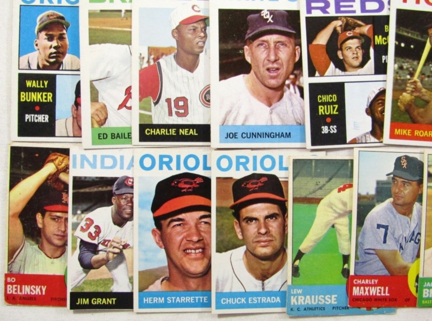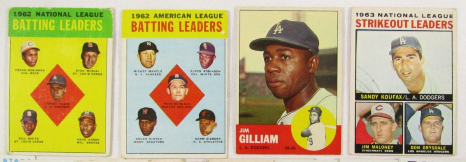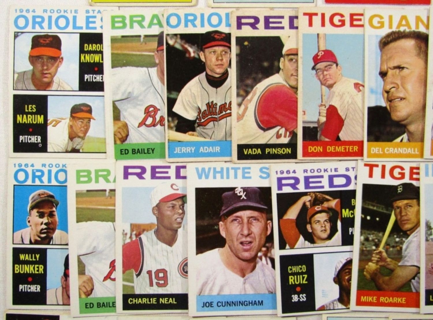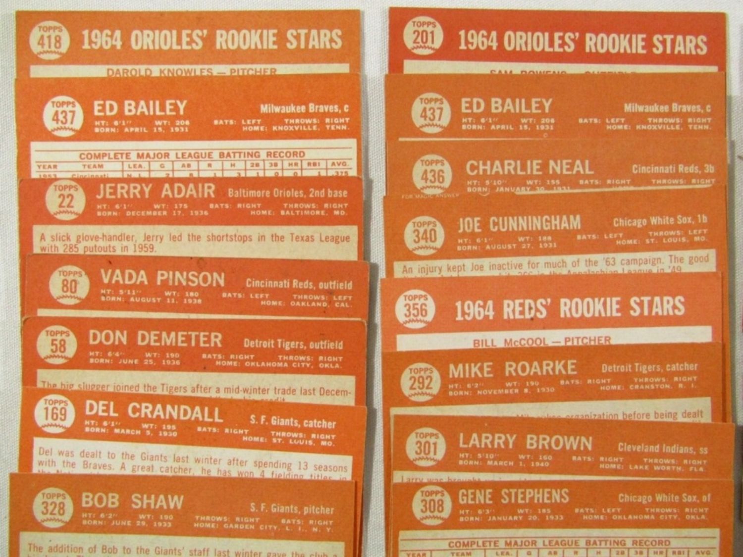 THIS LOT INCLUDES (10) 1963 TOPPS with #1 AARON LDRS VG & #2 MANTLE LDRS VG+; (22) 1964 TOPPS with #5 KOUFAX LDRS VGEX – OVERALL 1963’s VG/VGEX – 1964’s EX
