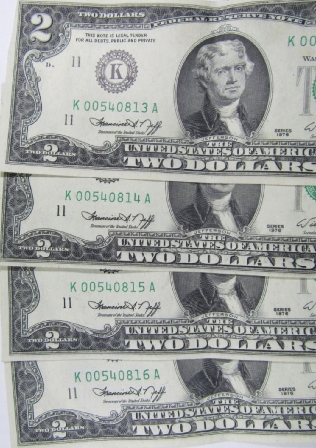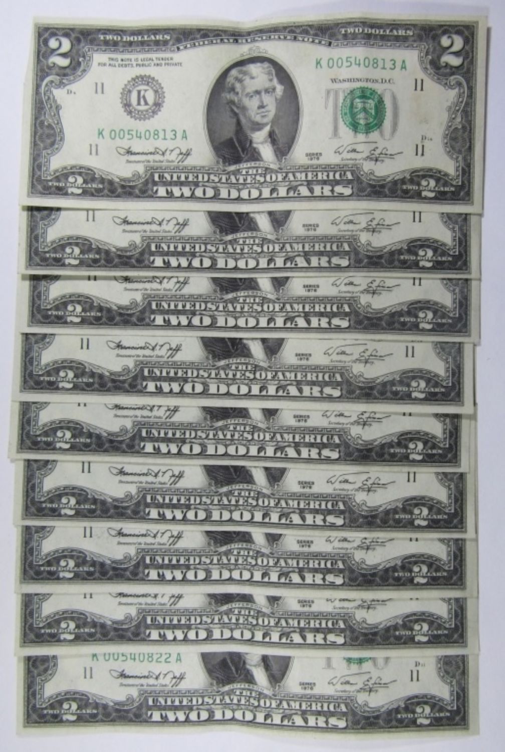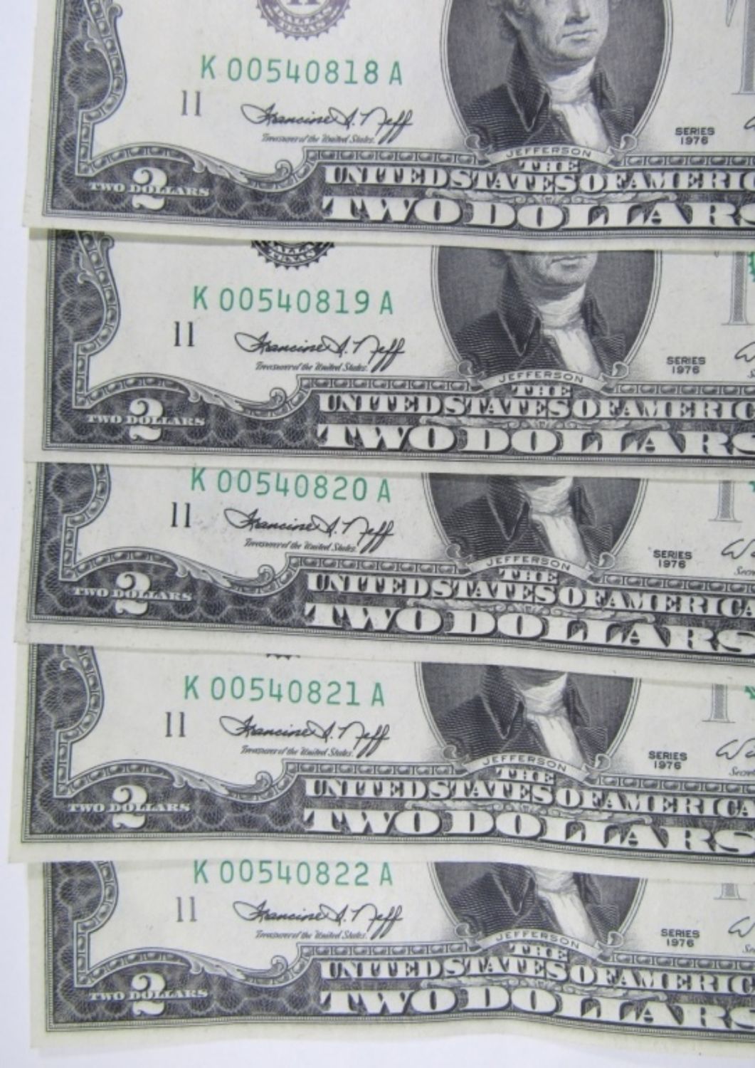 BICENTENNIAL FEDERAL RESERVE NOTES. MISSING ONE NOTE IN THE MIDDLE OF TWO CONSECUTIVE RUNS.