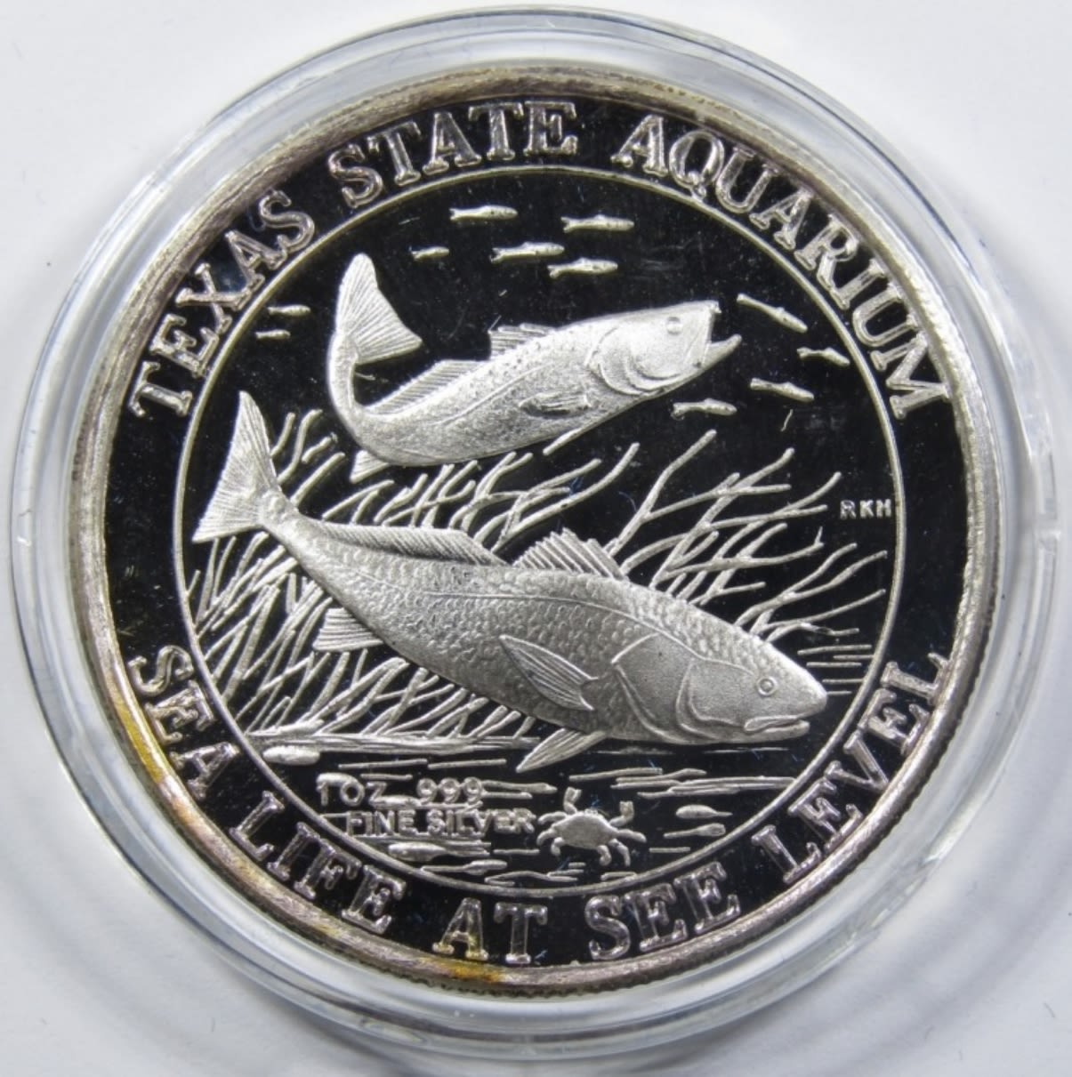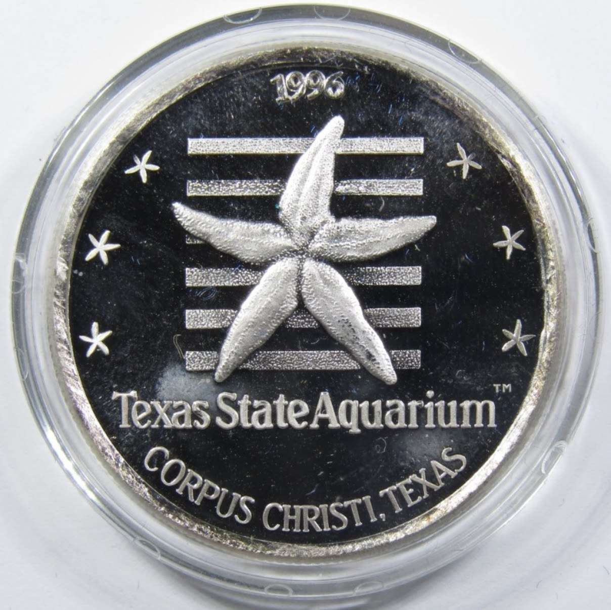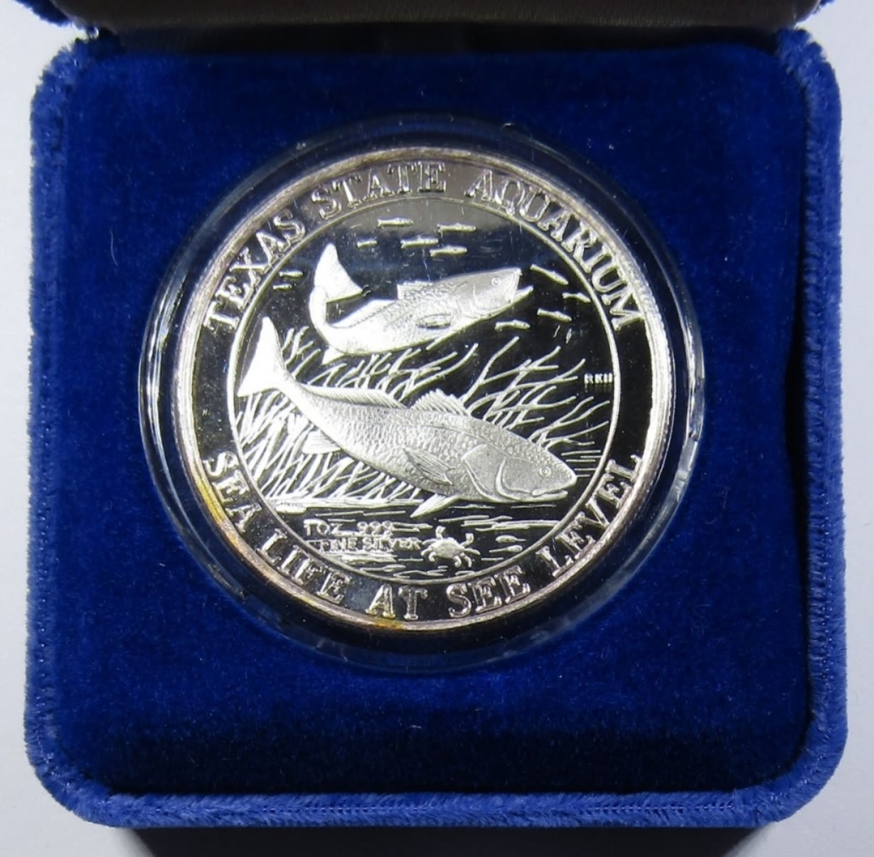 .999 SILVER “SEA LIFE AT SEE LEVEL” CORPUS CHRISTI, TEXAS. WITH BOX & VELVET CASE
