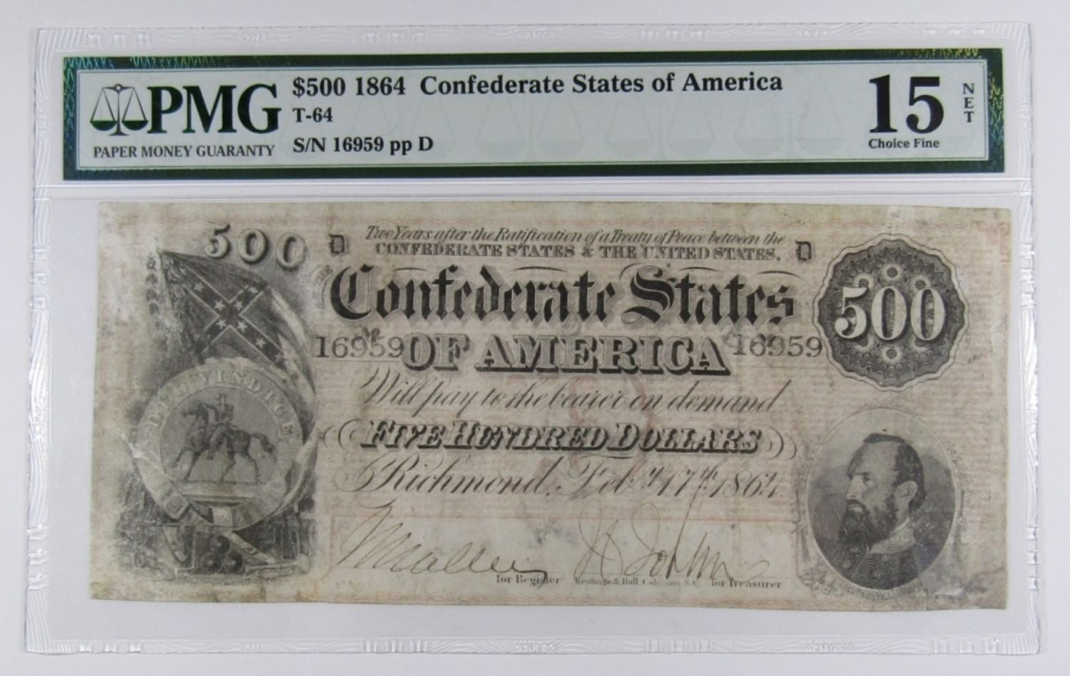 T-64. REPAIRED, STAINED. CONFEDERATE STATES OF AMERICA