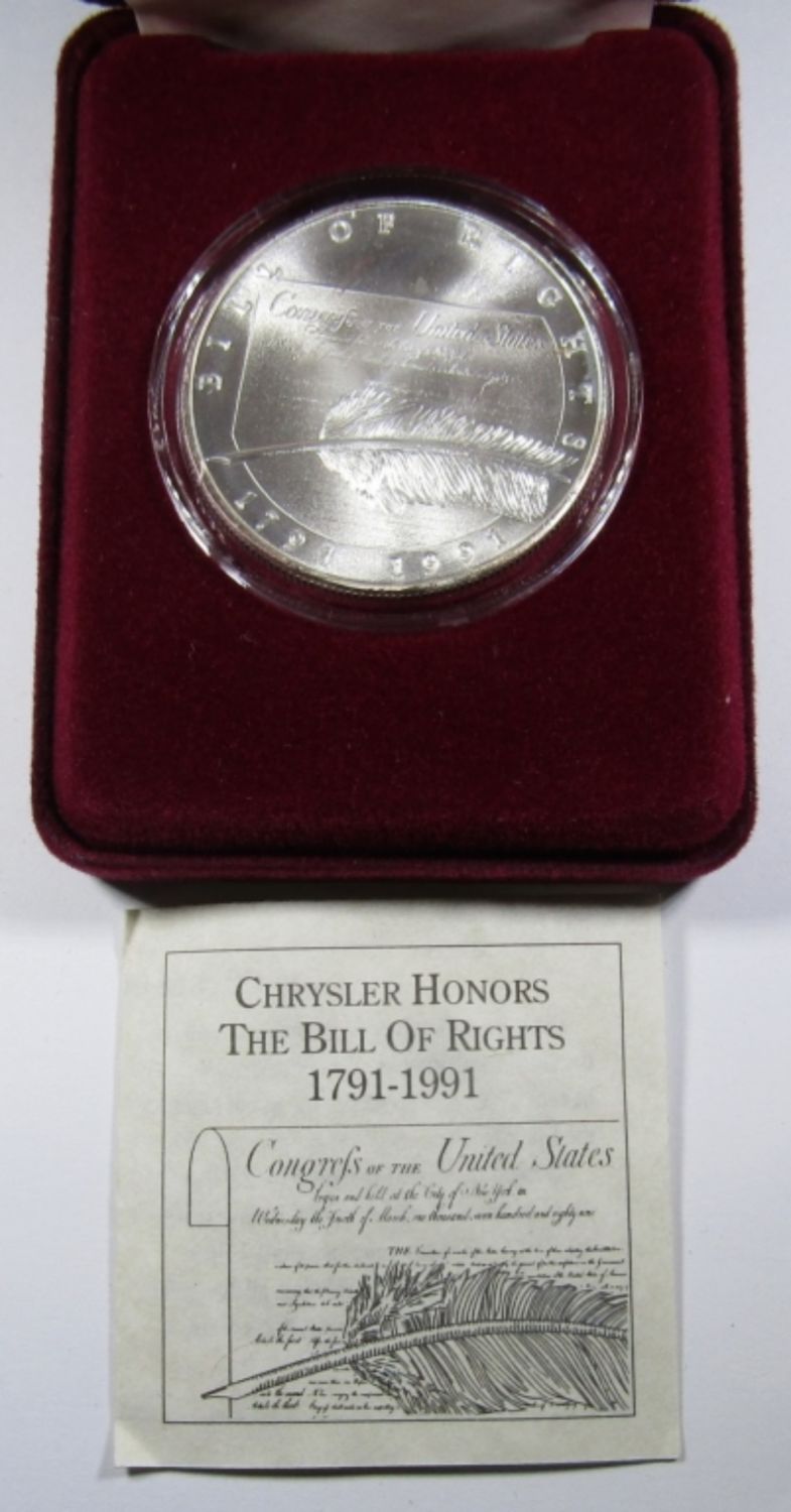 .999 SILVER CHRYSLER CORPORATION COMMEMORATIVE MEDALLION, LIBERTY MINT, WITH VELVET CASE & COA.