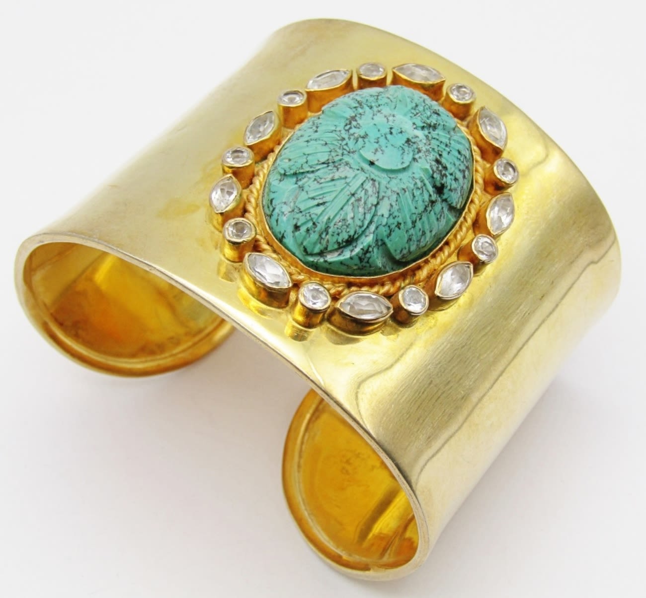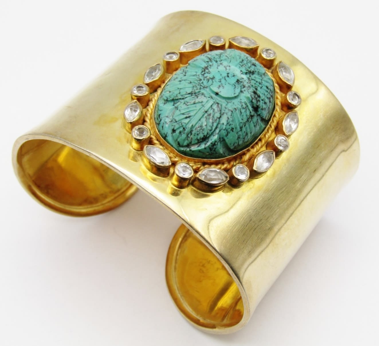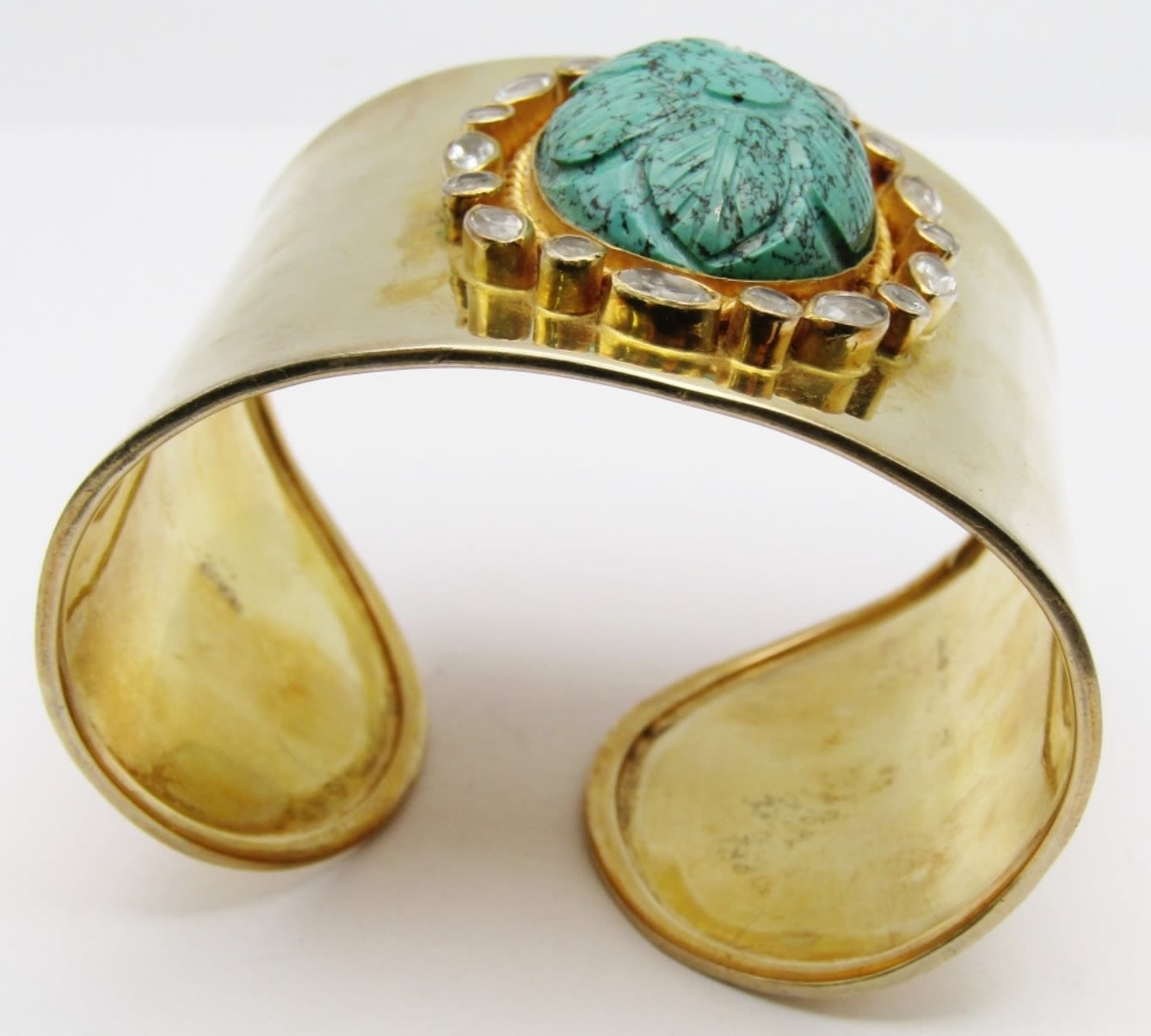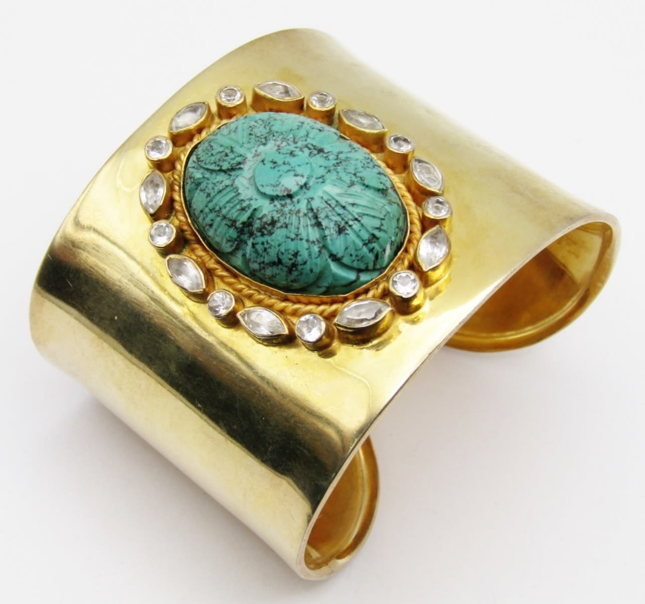 TURQUOISE CENTER STONE-CLEAR STONE AROUND BORDER-MEASURES 7.5 INCHES WITH GAP-TOTAL 40 DWT