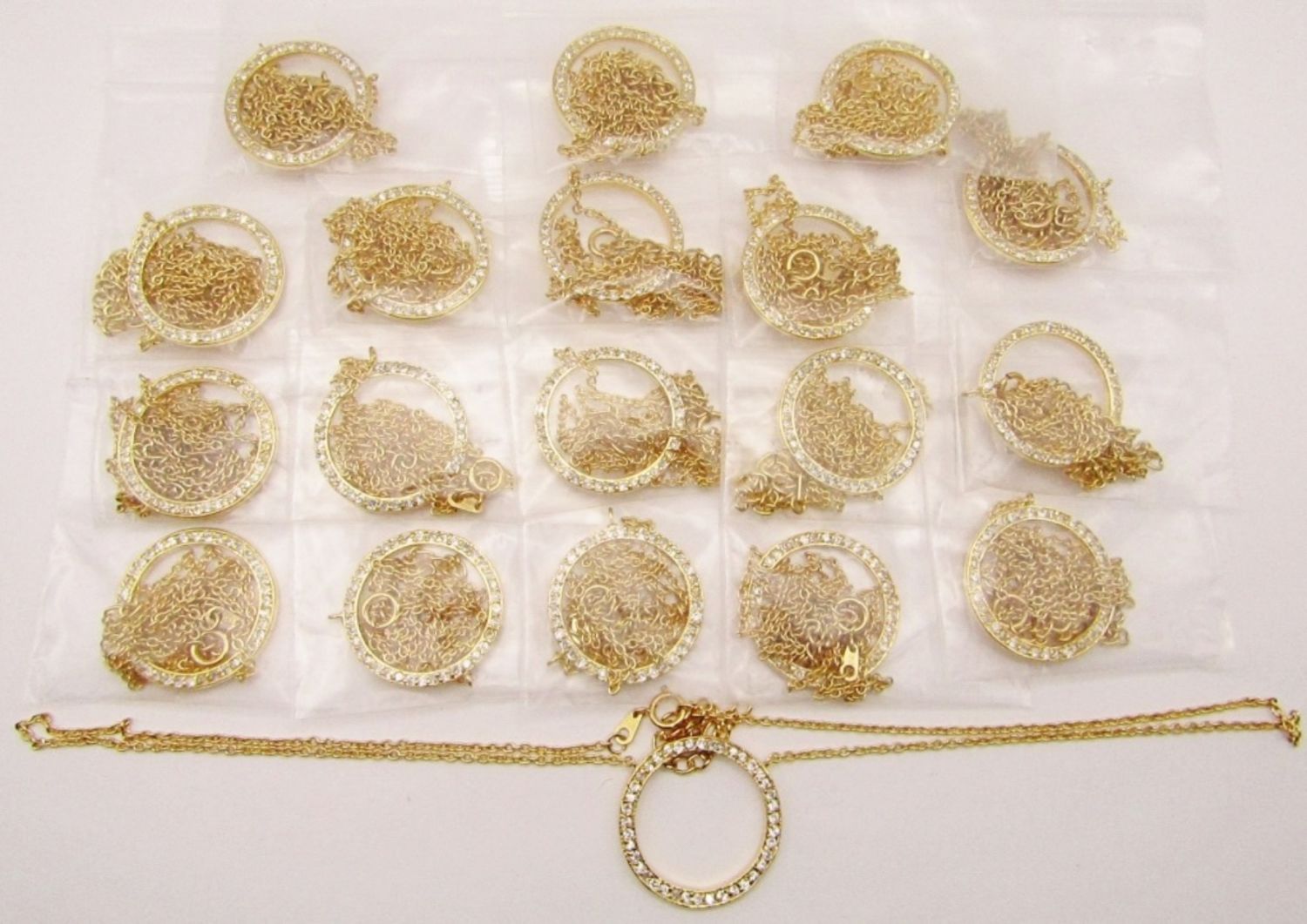 NECKLACES WITH CIRCULAR RHINESTONE PENDANT-MEASURES APPROX 20 INCHES-TOTAL 57 DWT