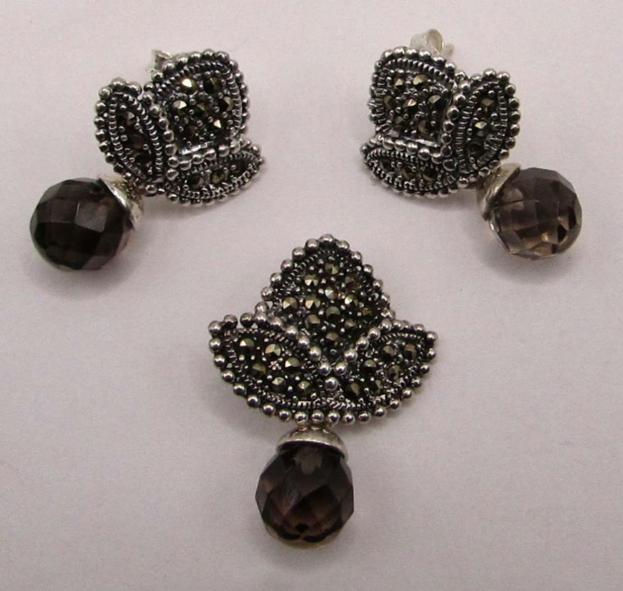 DANGLY BEAD CHARMS WITH MATCHING PAIR OF PIERCED EARRINGS-TOTAL 6 DWT