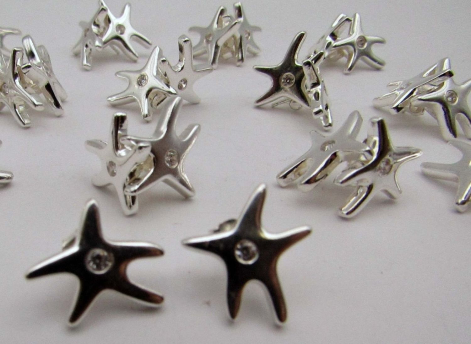 STARFISH EARRINGS WITH RHINESTONE CENTER-TOTAL 25 DWT