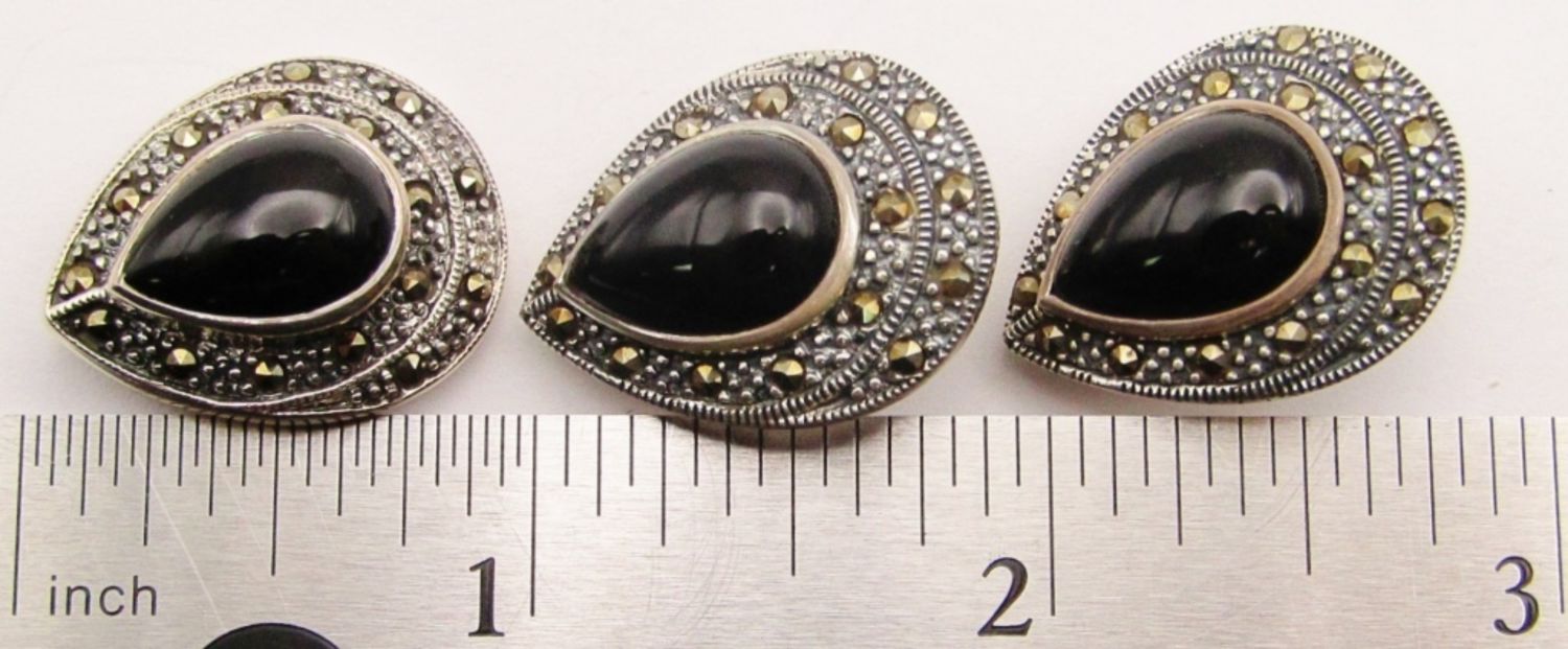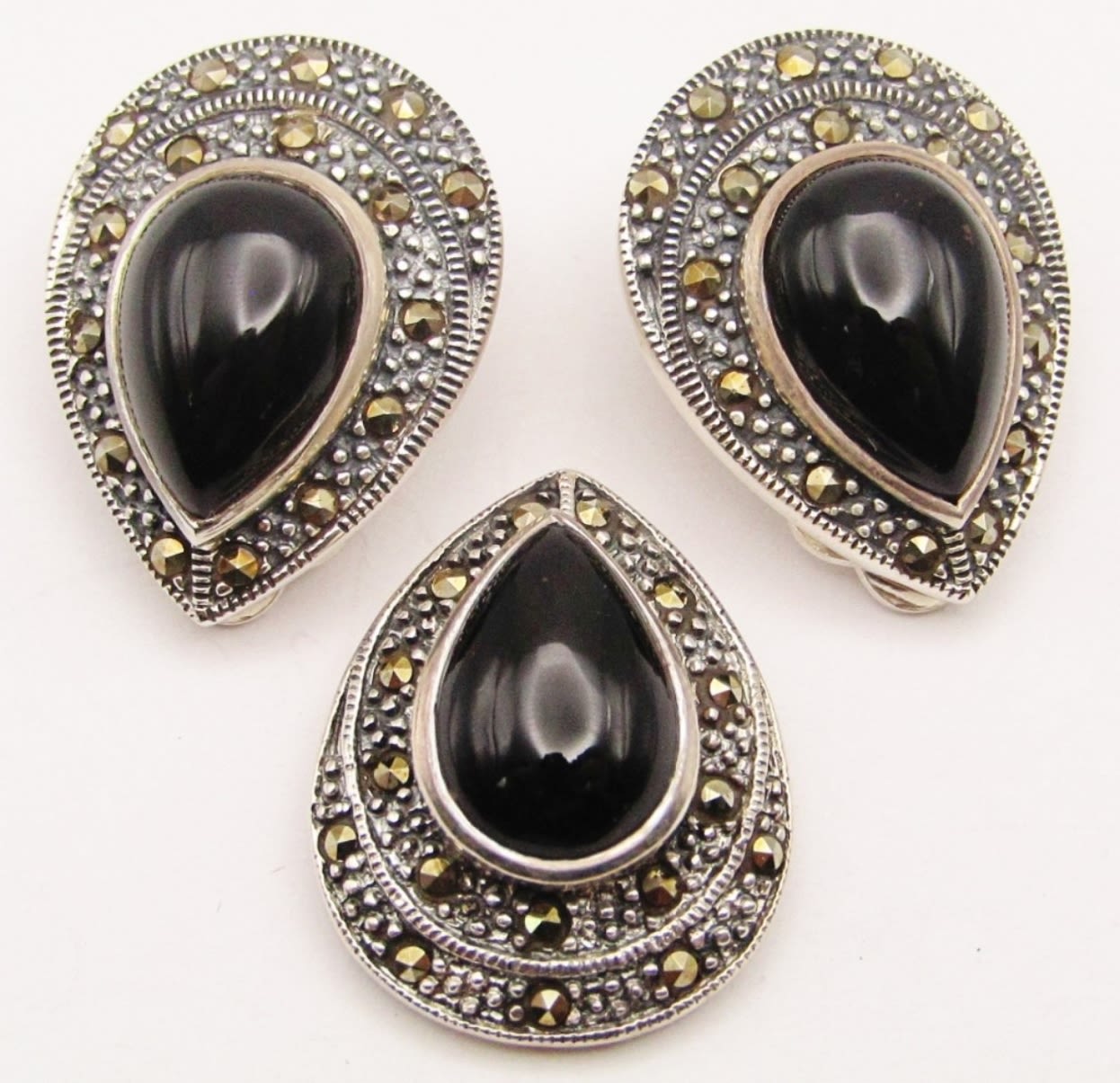 ONYX CENTER DESIGN WITH MATCHING PAIR OF CLIP ON EARRINGS-TOTAL 11 DWT