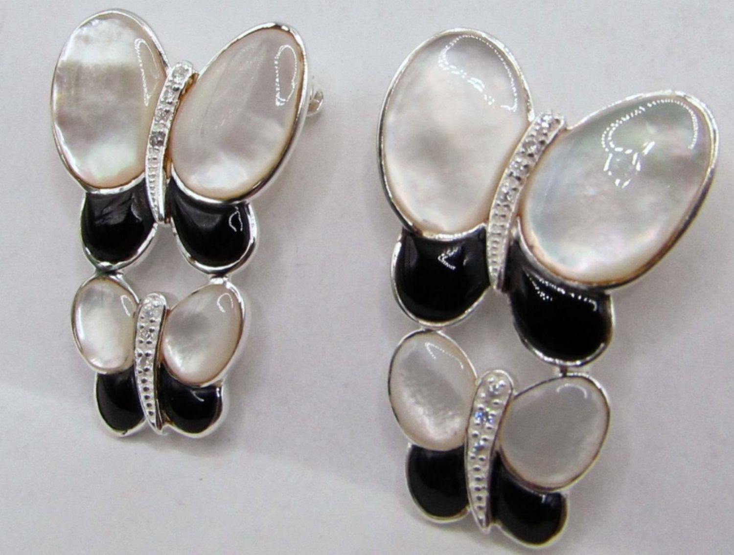 MOTHER OF PEARL AND ONYX INLAY STONE DESIGNS-TOTAL 10 DWT