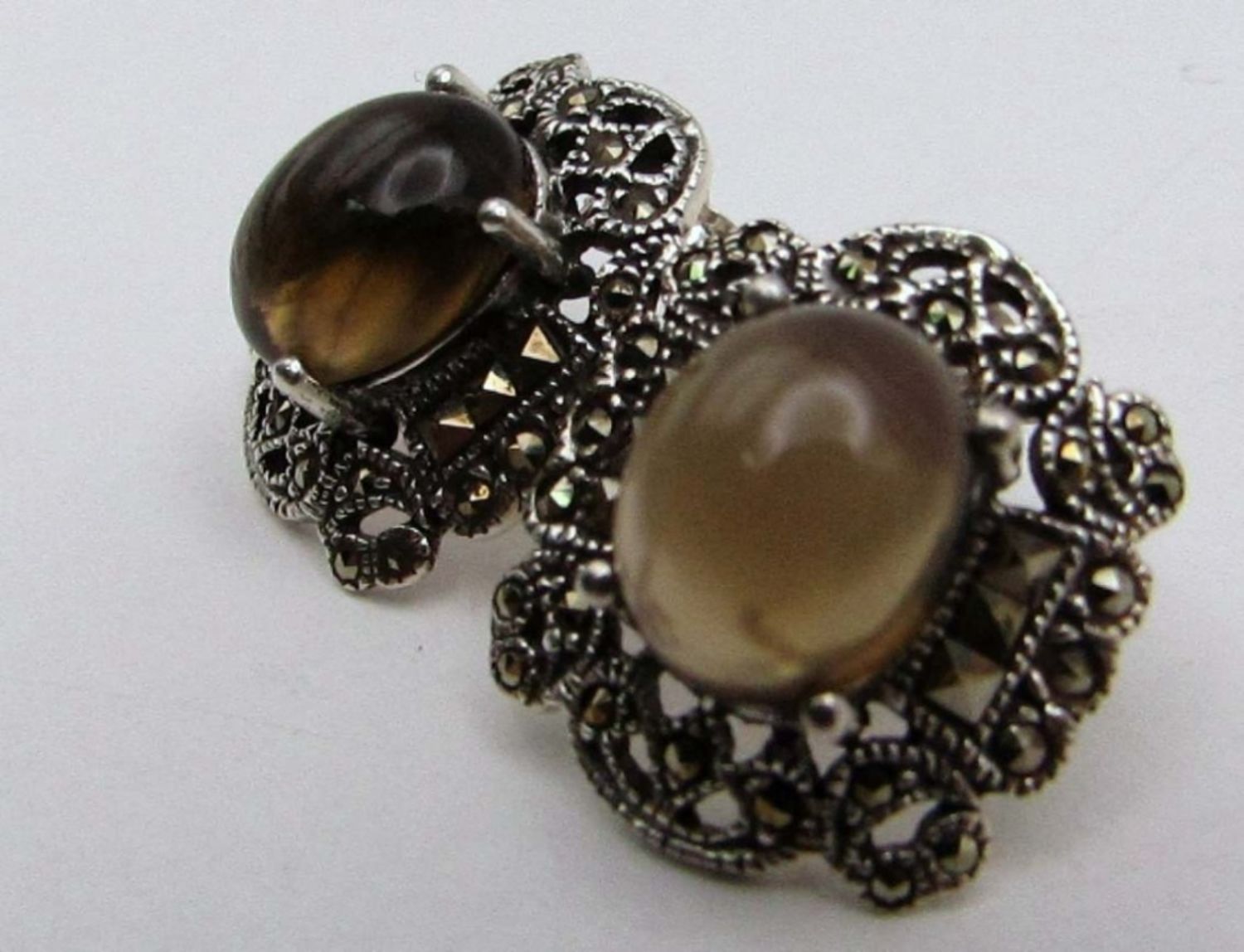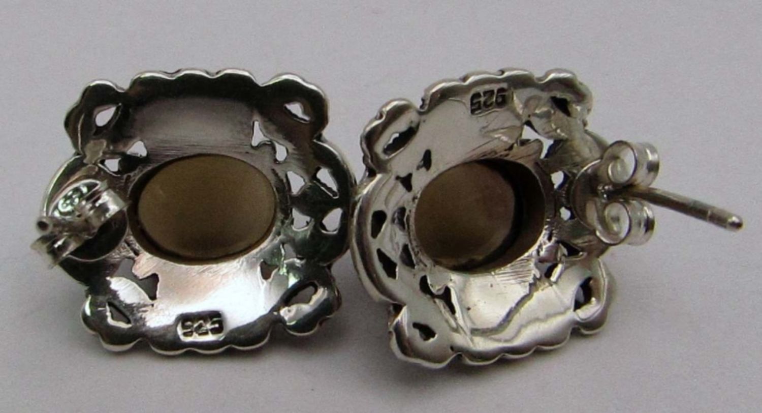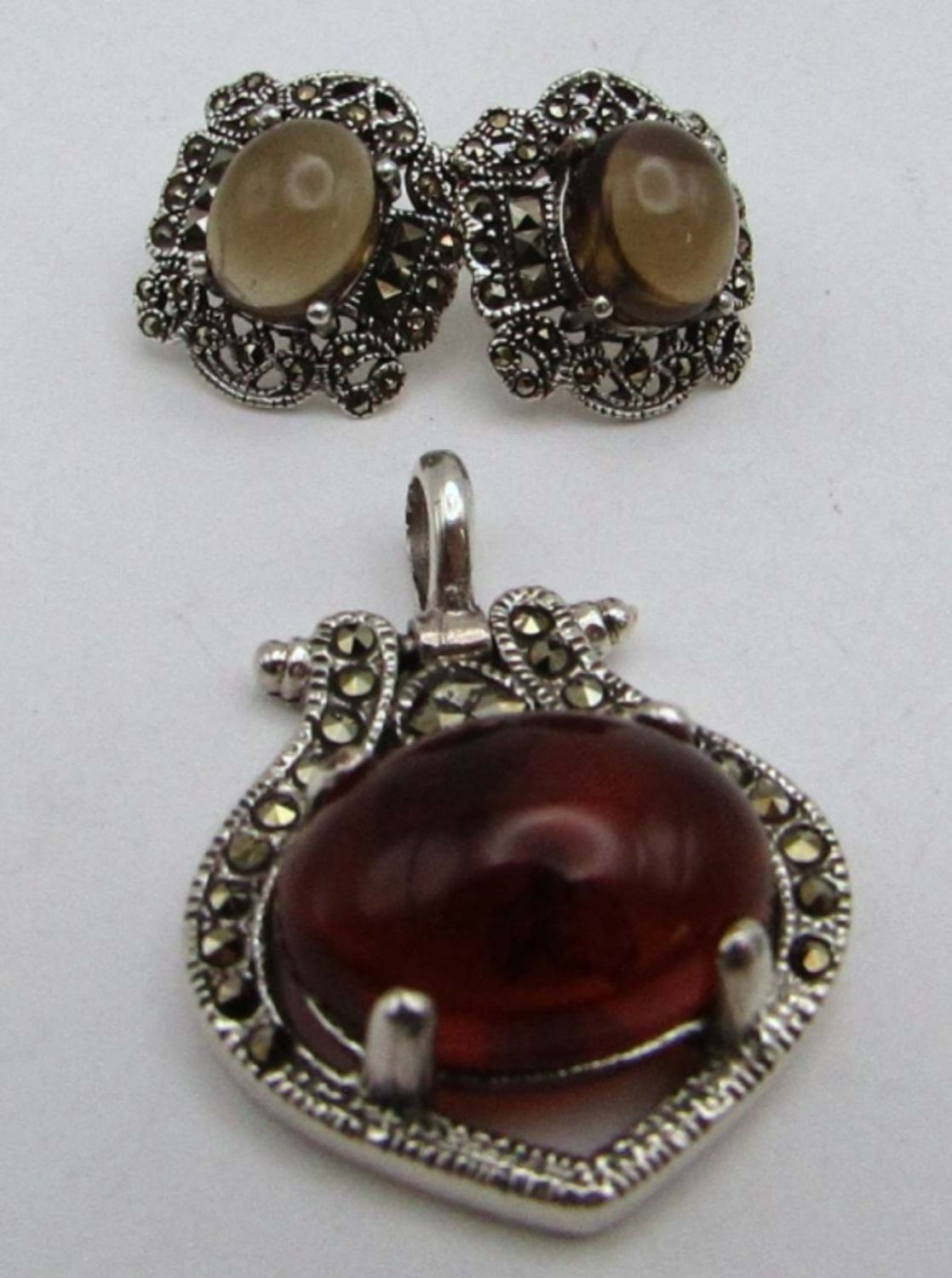 WITH BALTIC AMBER CENTER & (1)PAIR OF STUD EARRINGS WITH GRAY CENTER STONE-TOTAL 8 DWT