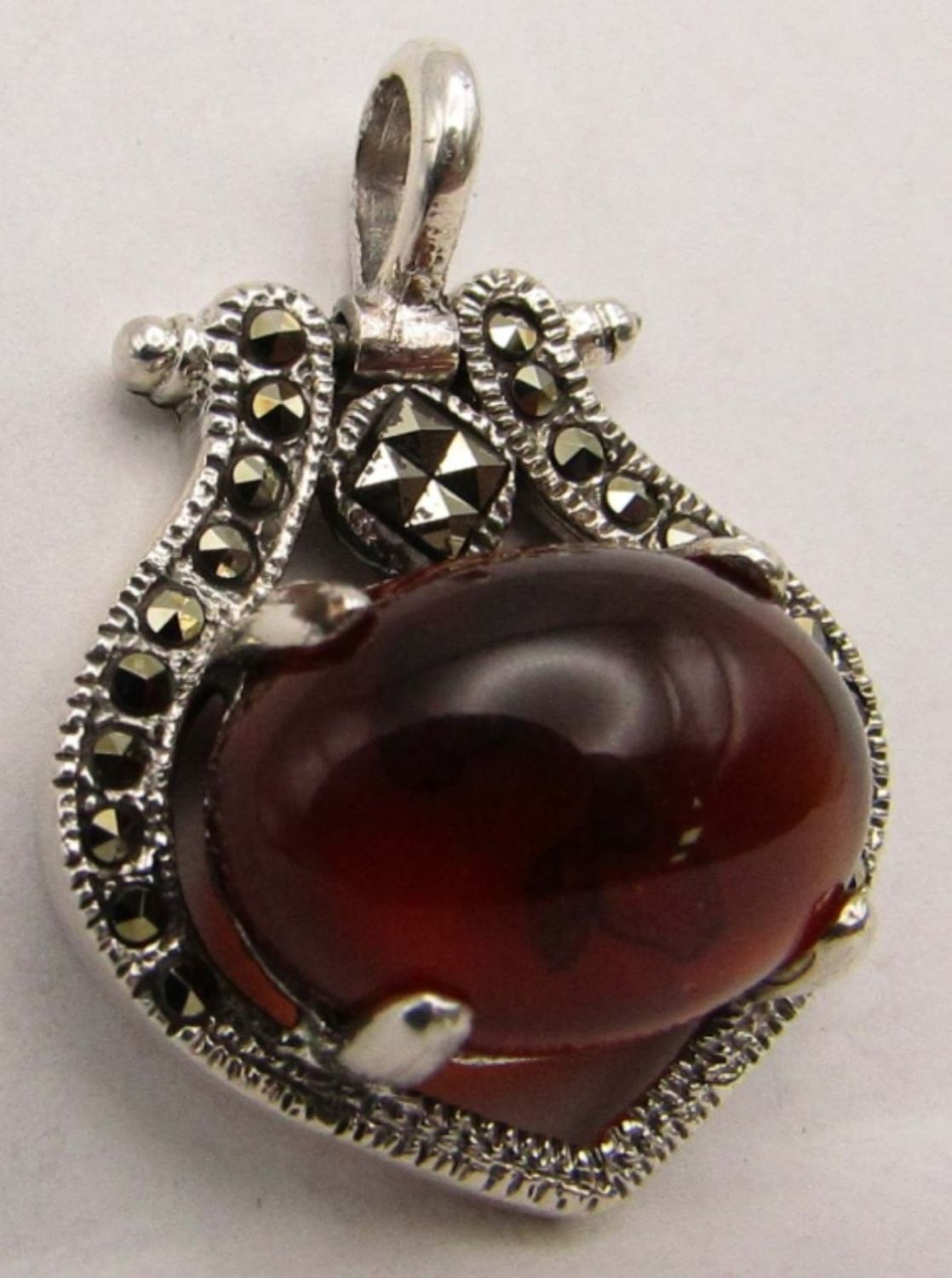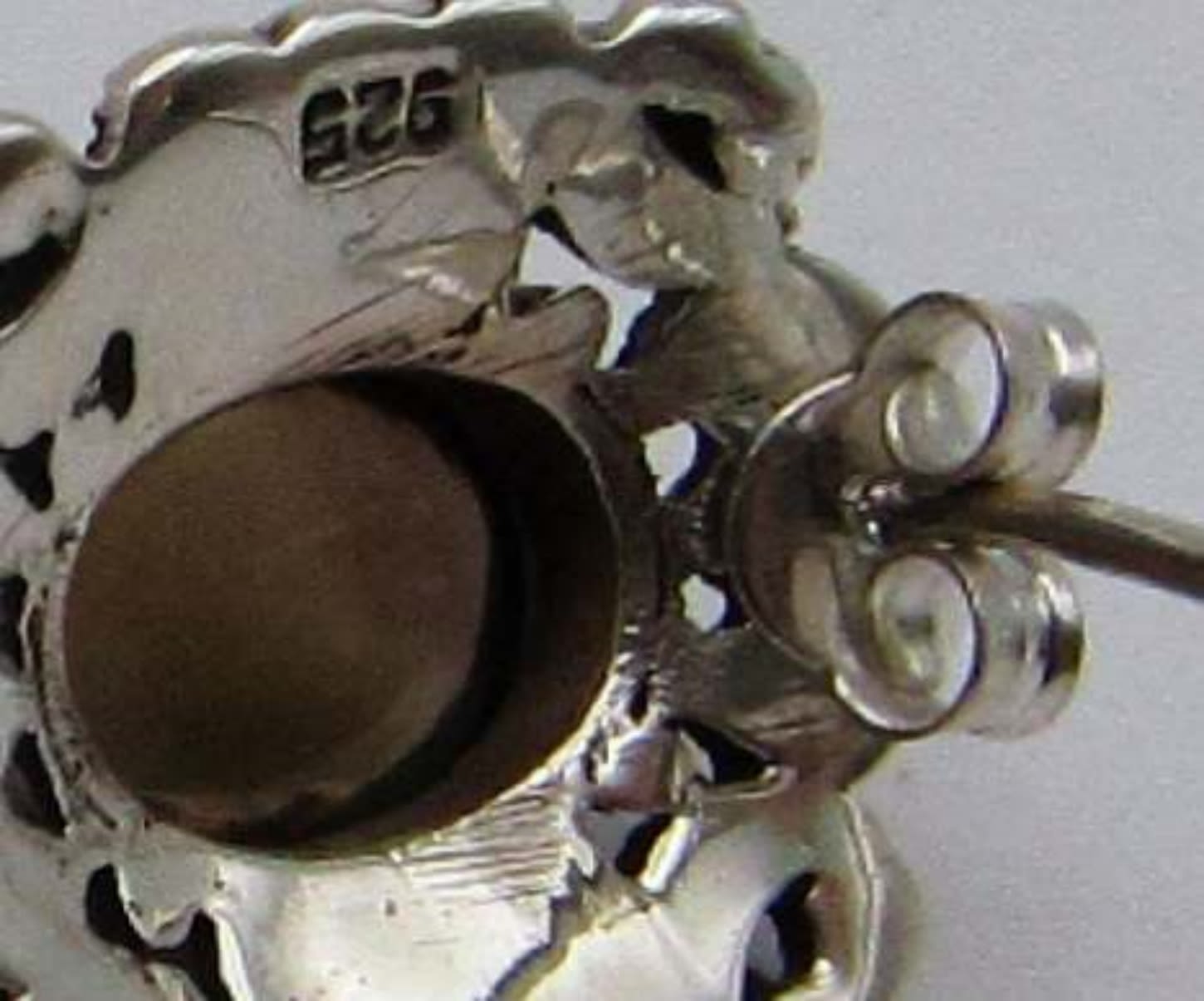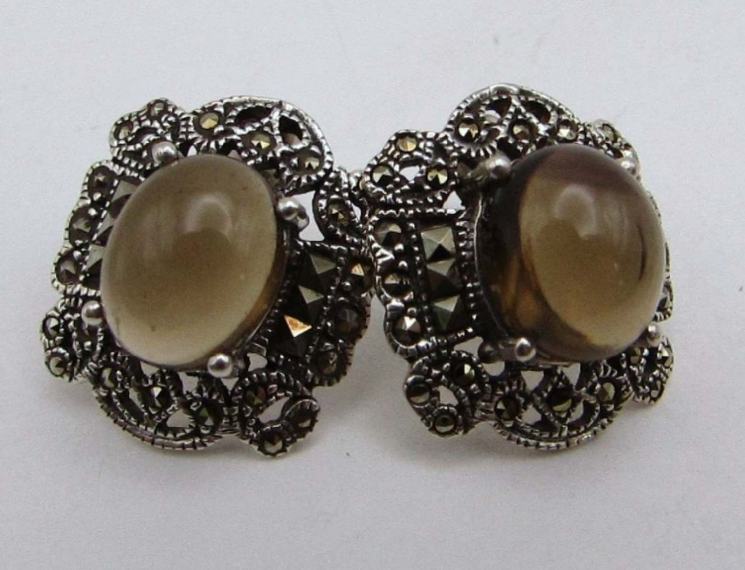WITH BALTIC AMBER CENTER & (1)PAIR OF STUD EARRINGS WITH GRAY CENTER STONE-TOTAL 8 DWT