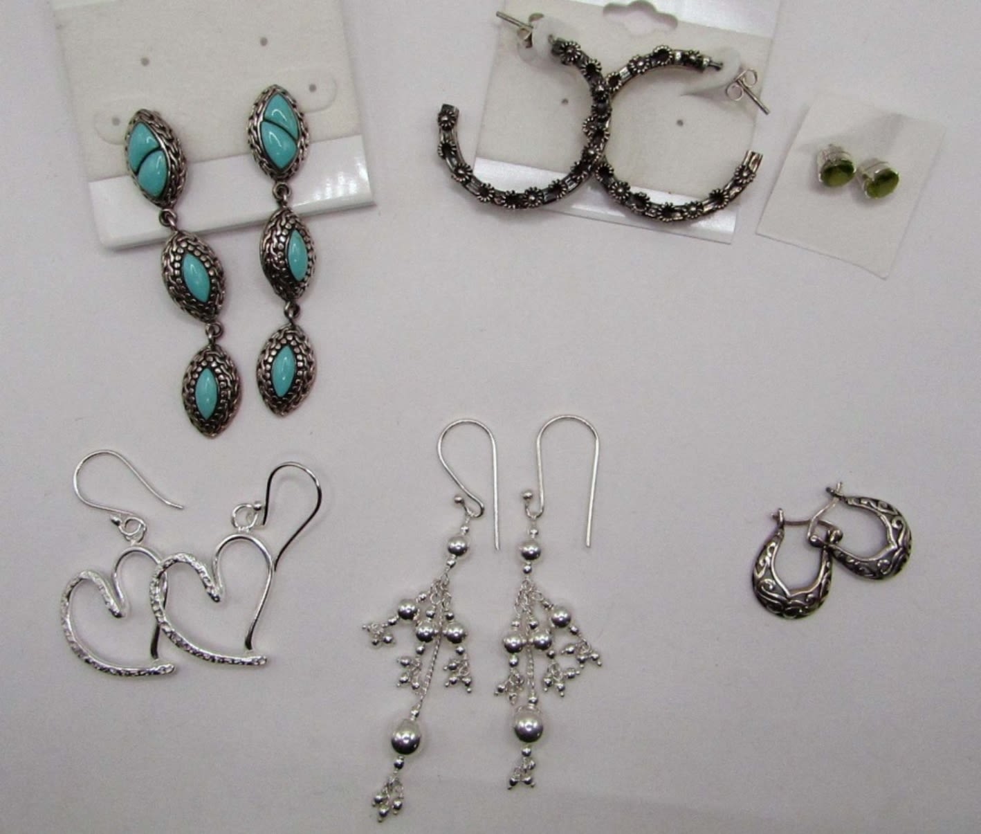 HEART SHAPED, DANGLING BEADS, 1 WITH TURQUOISE STONES, FLOWERS, AND PERIDOT 20 DWT TOTAL