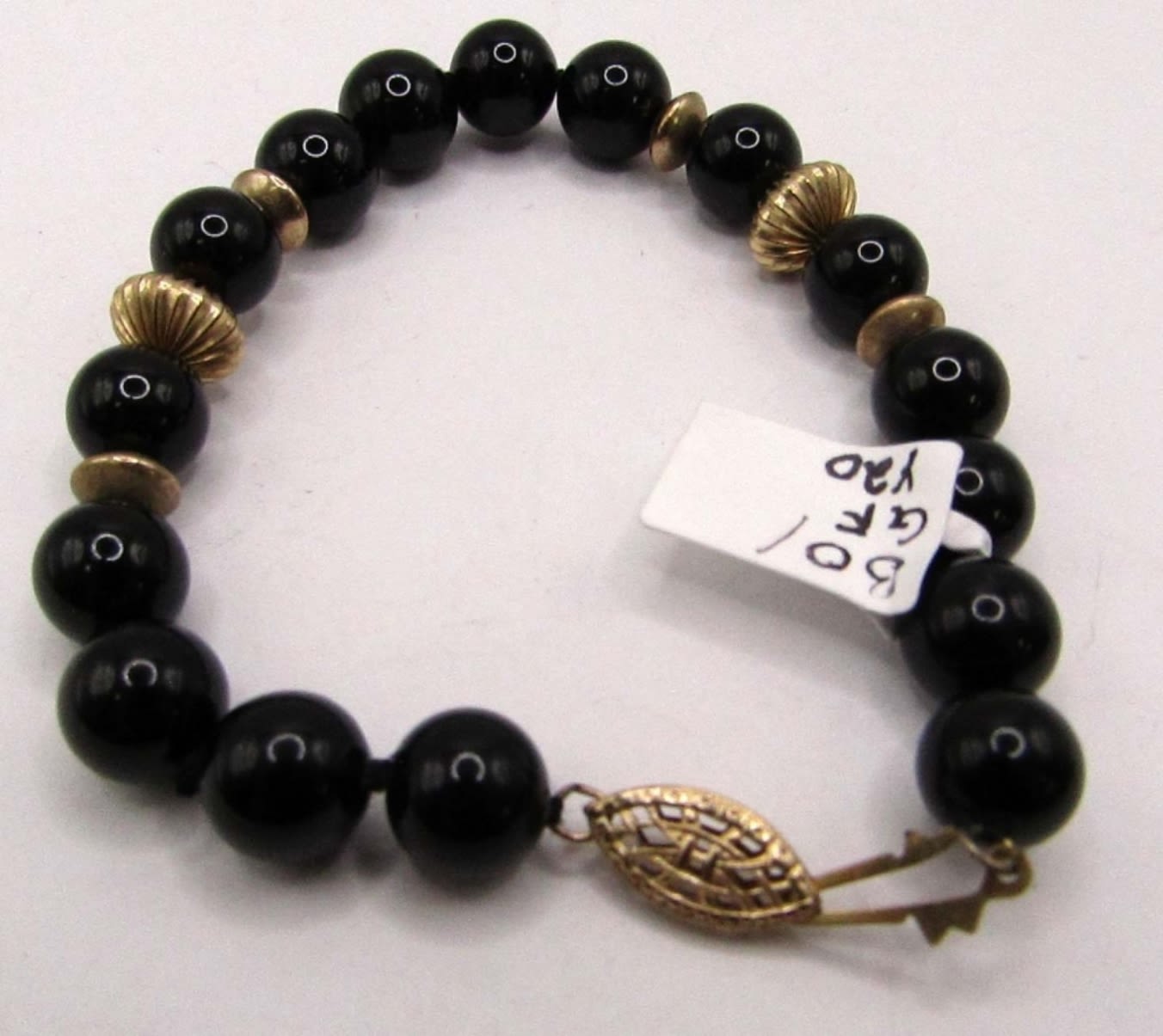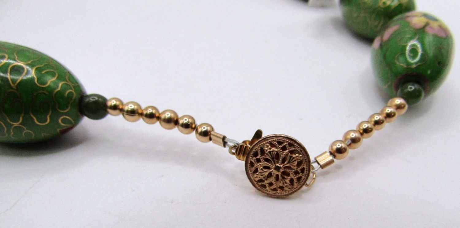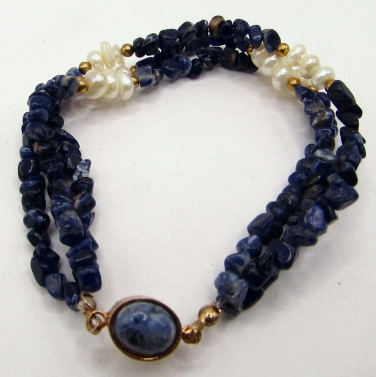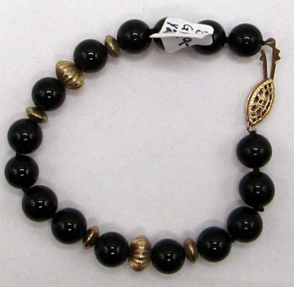 ALL WITH 14K BEADS AND CLASPS. CULTURE PEARLS & DUMORTIERITE, HAND PAINTED BEADS, AND BLACK AND GOLD BEADS.