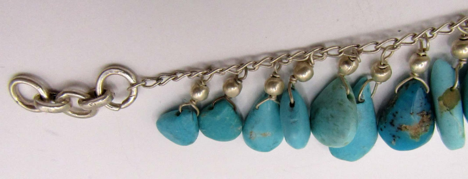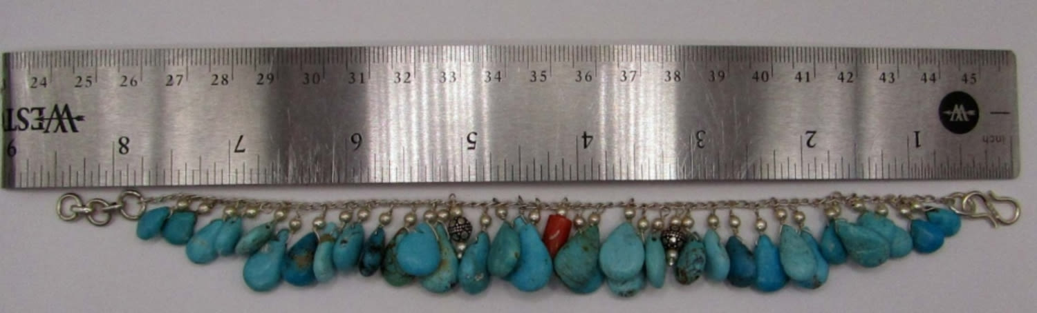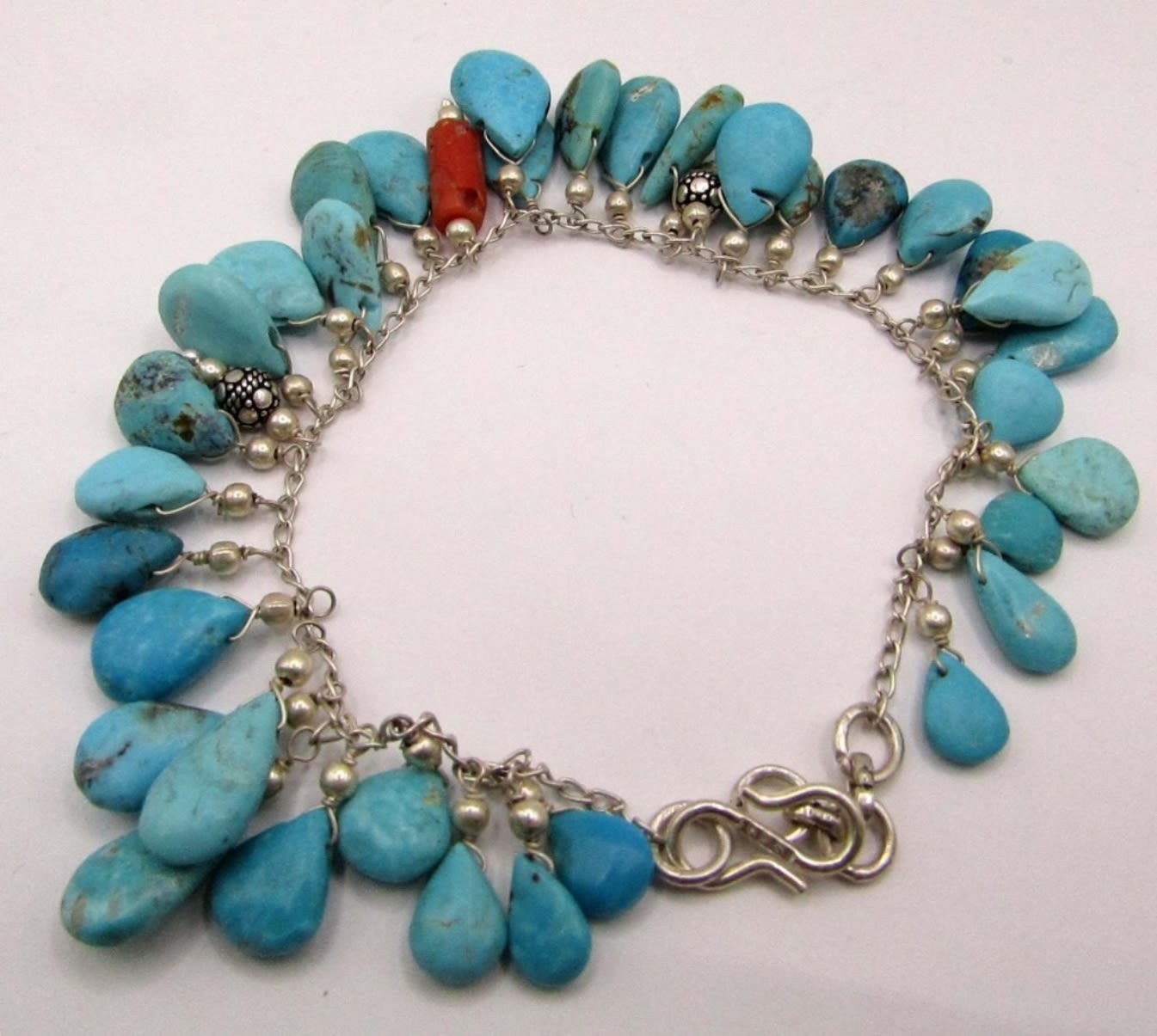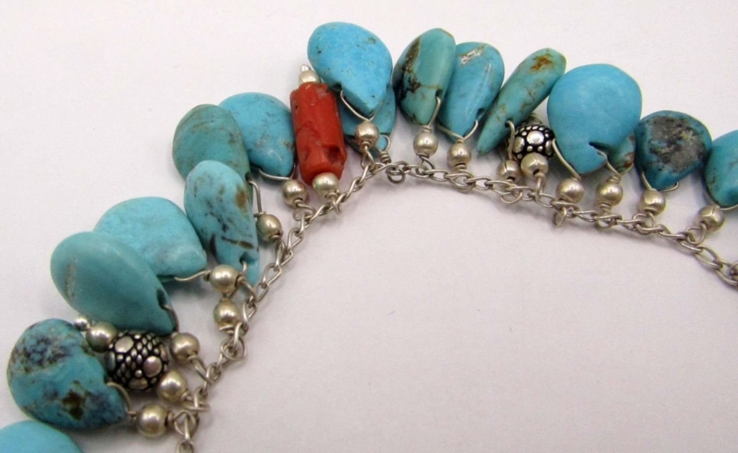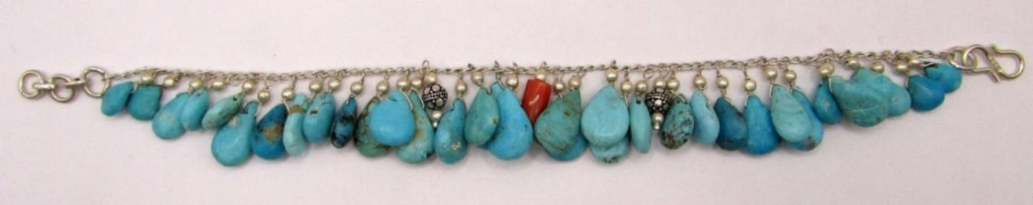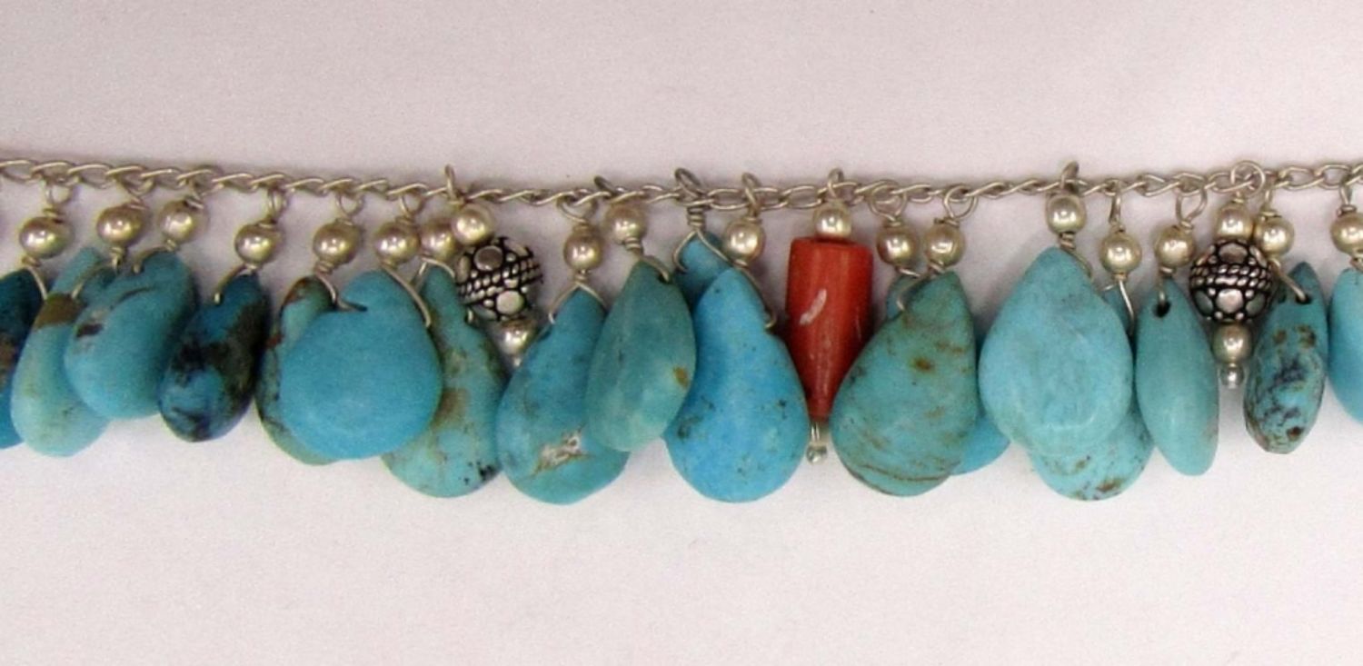 TURQUOISE BEADED CHARMS-RED CORAL ACCENTS
