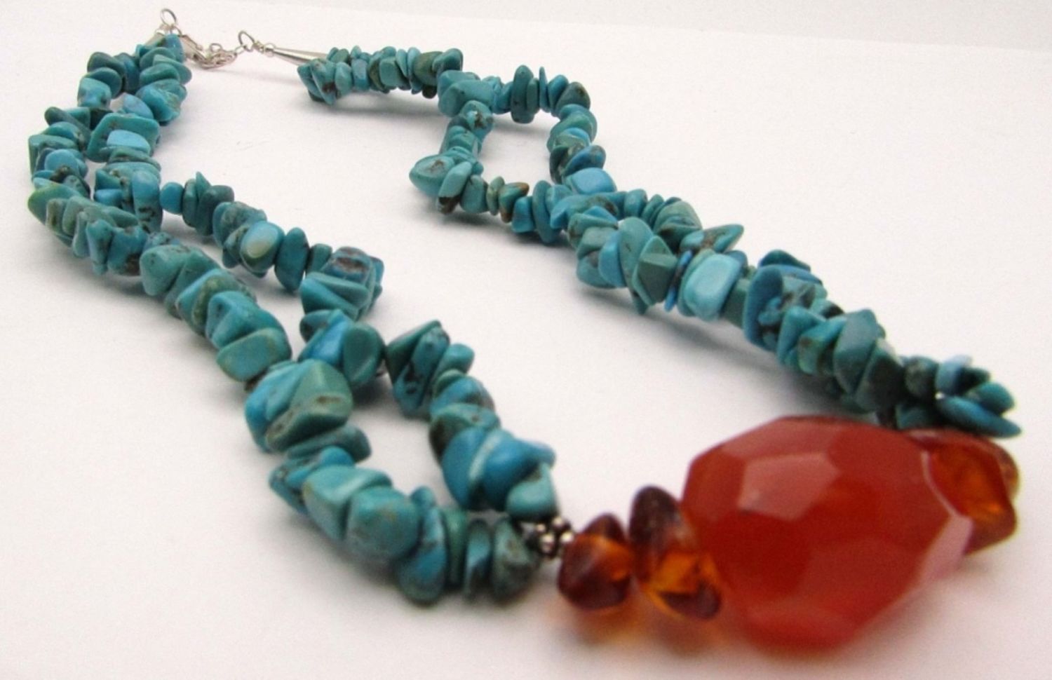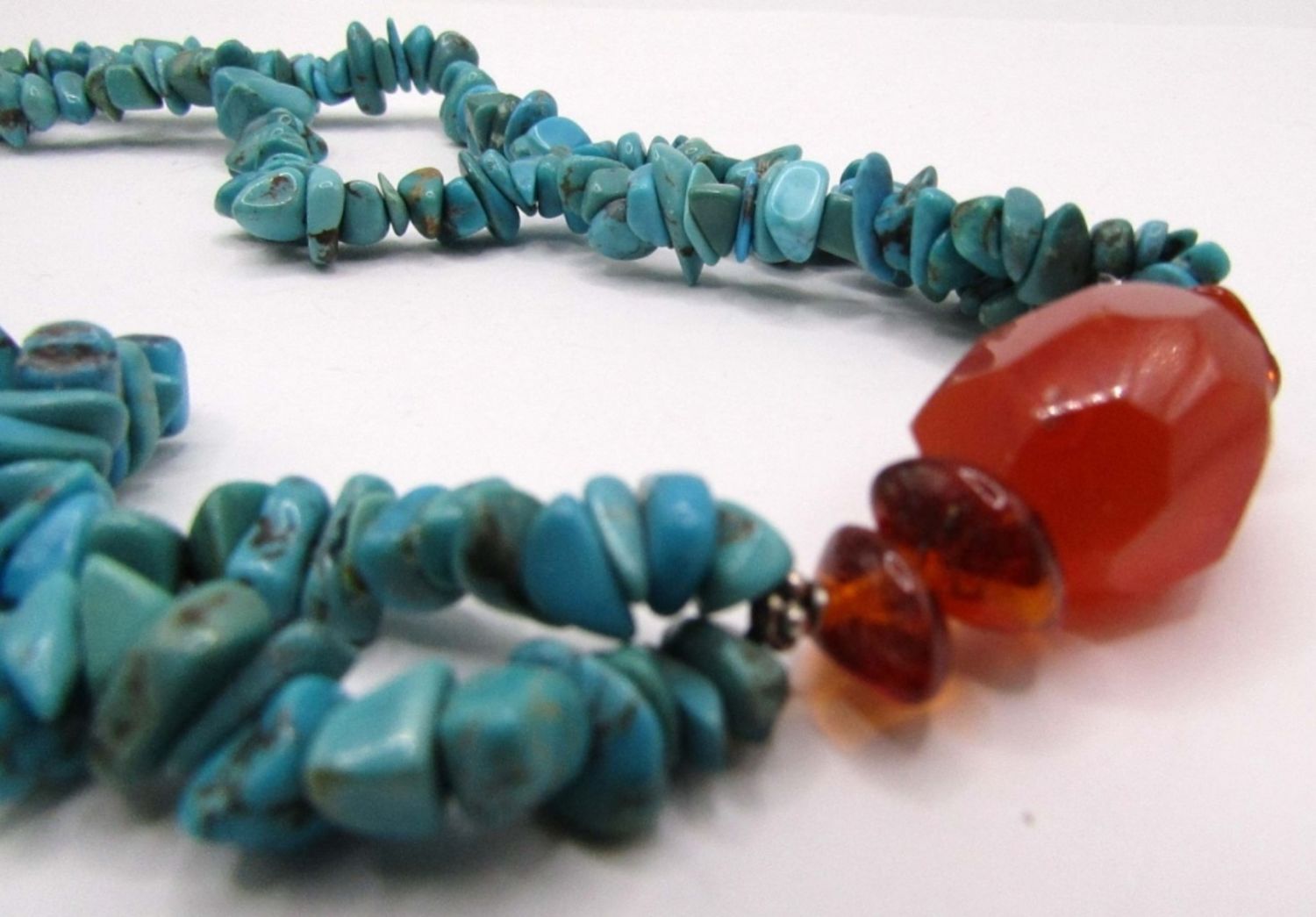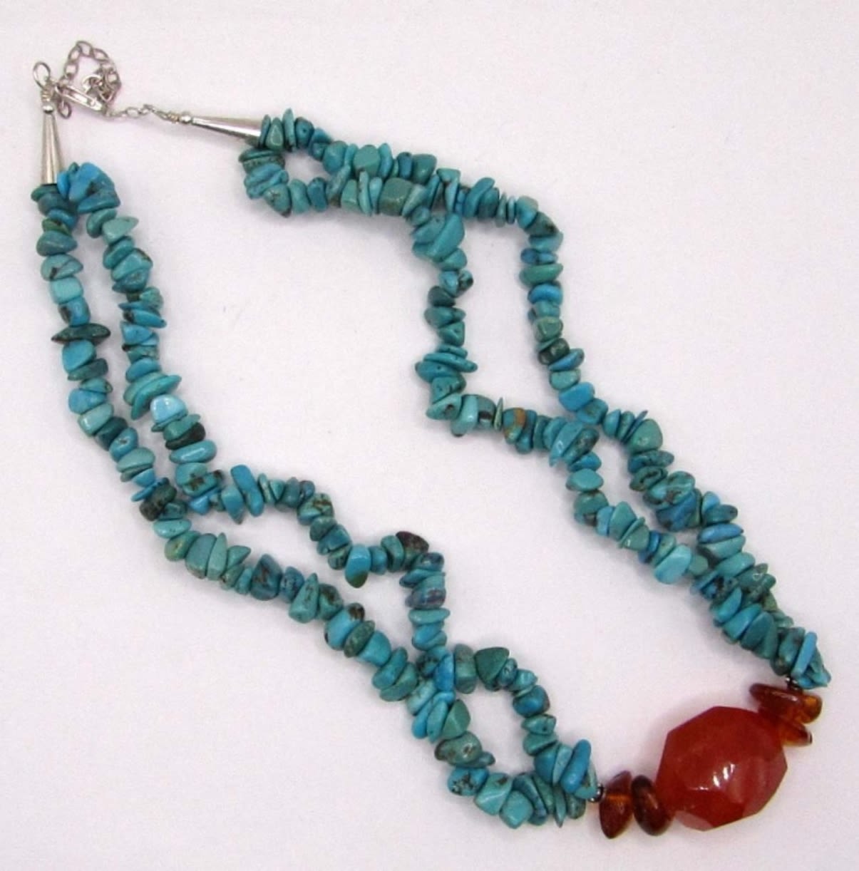 BEADED NECKLACE WITH BALTIC AMBER STONE ACCENTS-MEASURES 18.5 INCHES