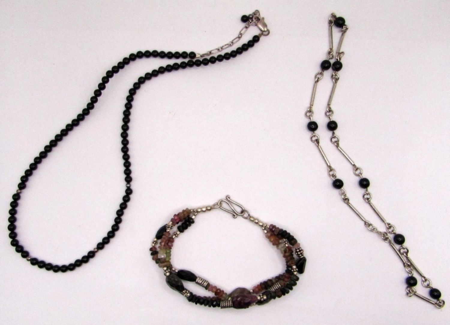 BEADED LOT: (2)NECKLACES & (1)MULTI STRANDED BRACEELT