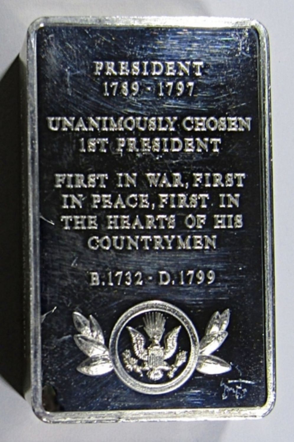 APROX 10.4 ozt (208 dwt) .925 SILVER. 5000 GRAINS STERLING SILVER, PRESIDENTIAL INGOTS COLLECTION- FIRST EDITION.