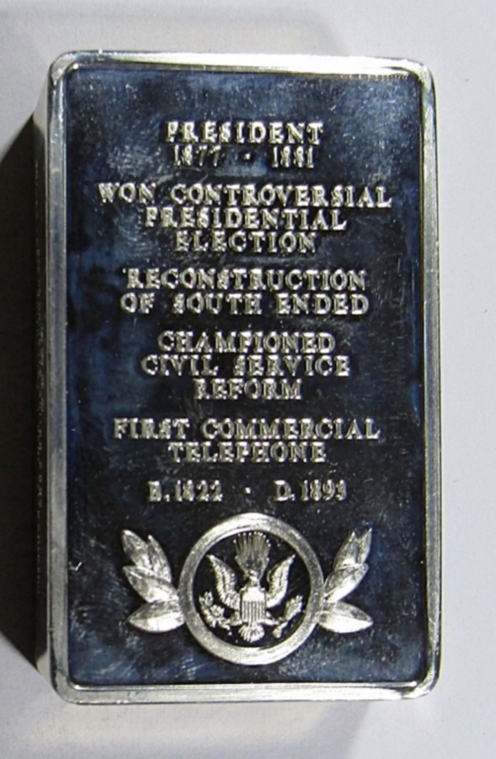 APROX 10.4 ozt (208 dwt) .925 SILVER. 5000 GRAINS STERLING SILVER, PRESIDENTIAL INGOTS COLLECTION- FIRST EDITION.