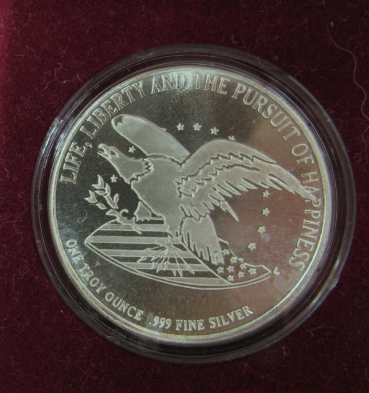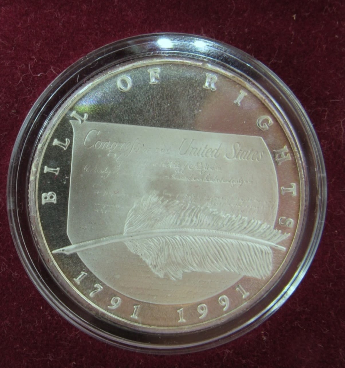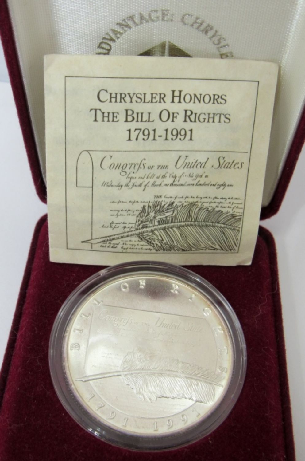.999 SILVER CHRYSLER CORPORATION COMMEMORATIVE MEDALLION, LIBERTY MINT, WITH VELVET CASE & COA.