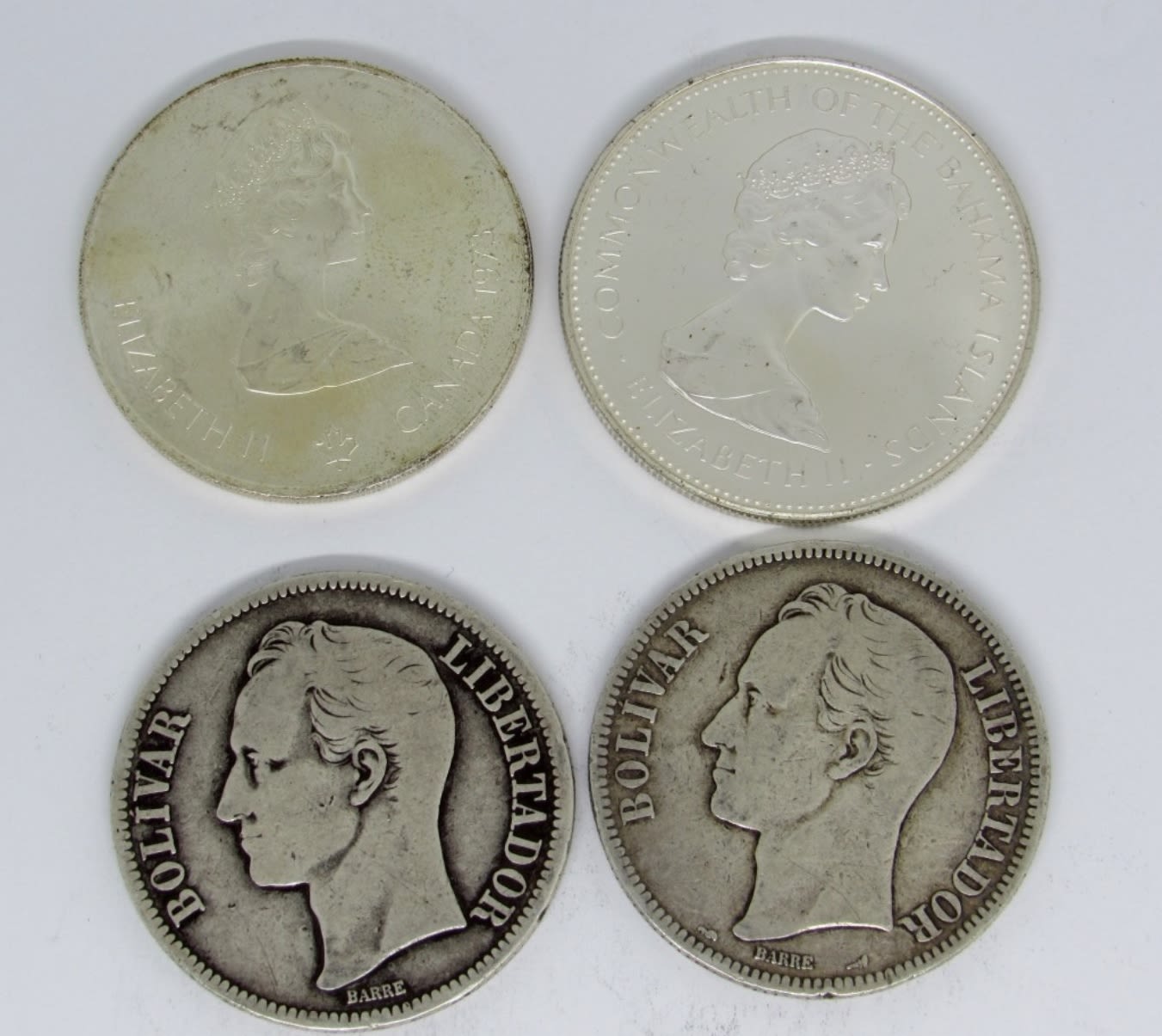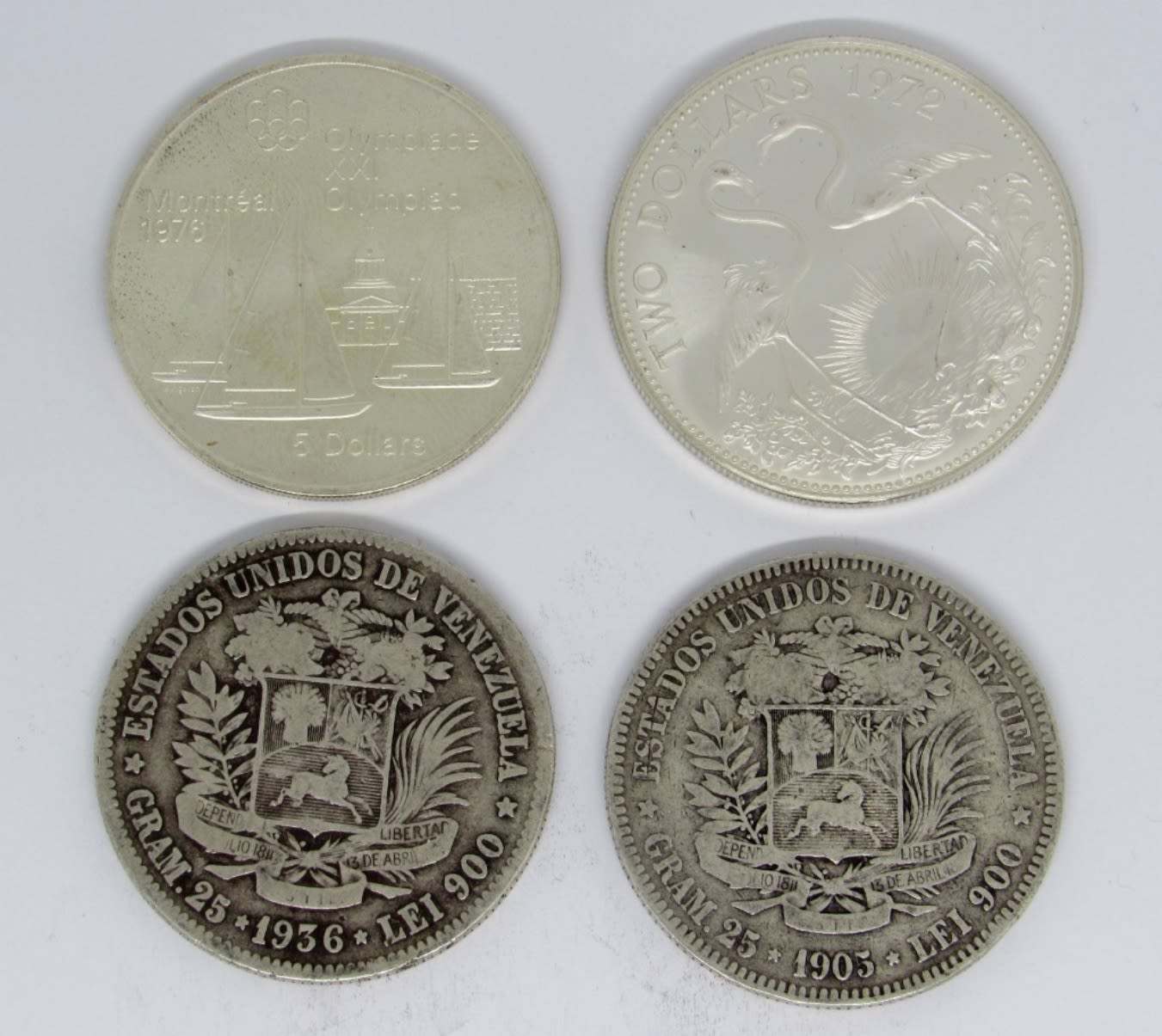 VENEZUELA 1905 & 36 5 BOLIVARES, 1972 BAHAMAS $2, & 1973 CANADA $5 OLYMPIAD